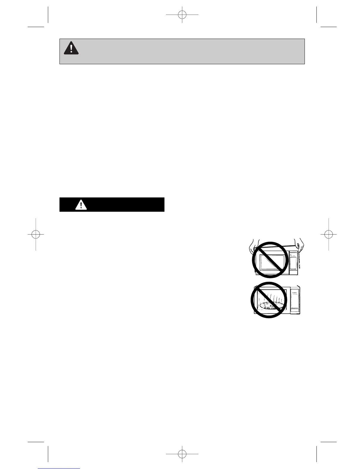 DO NOT remove outer panel from oven. Repairs must be done only by a qualified serv-