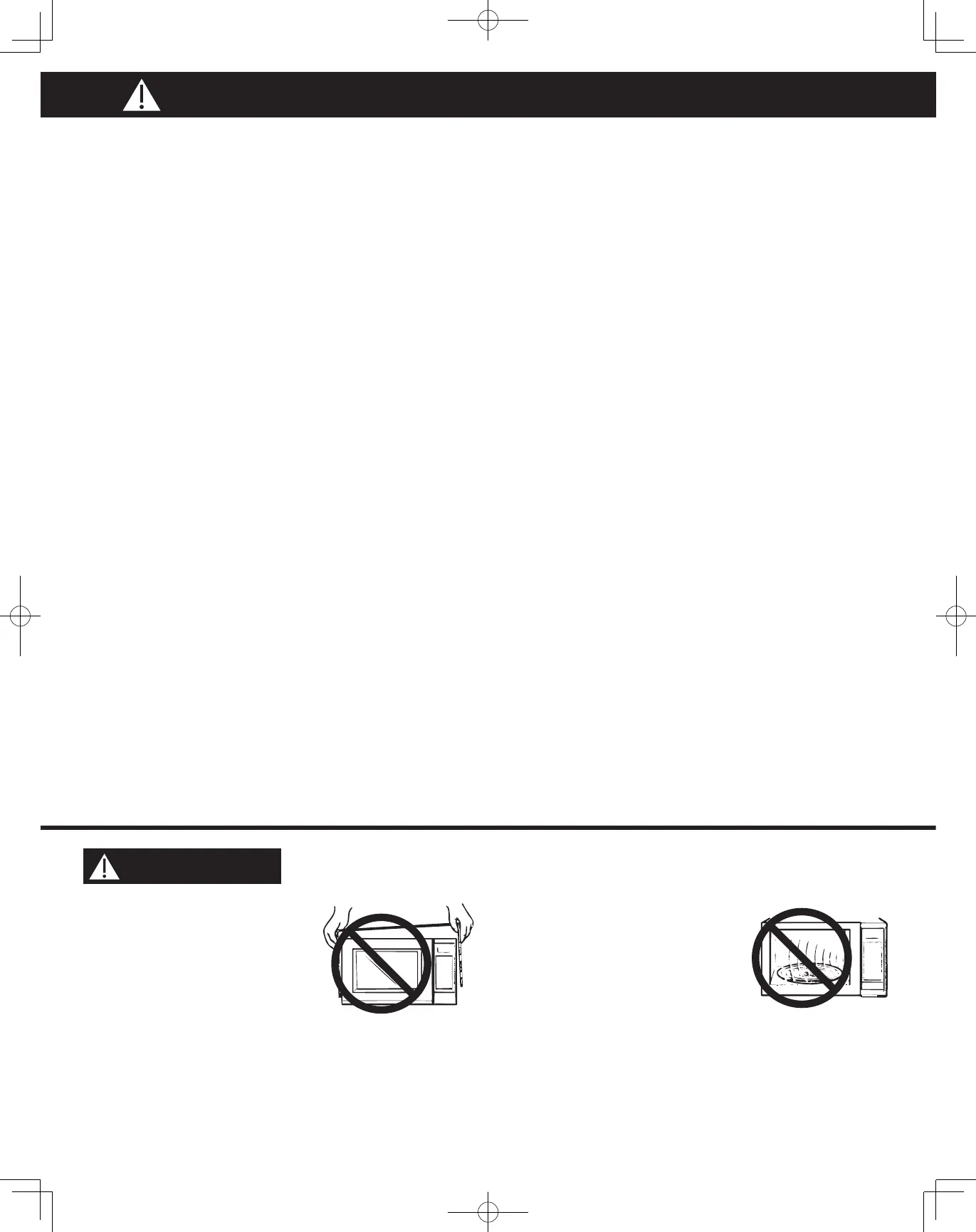 (d) DO NOT use the cavity for storage purposes. DO NOT leave paper products, cooking utensils or food in the cavity