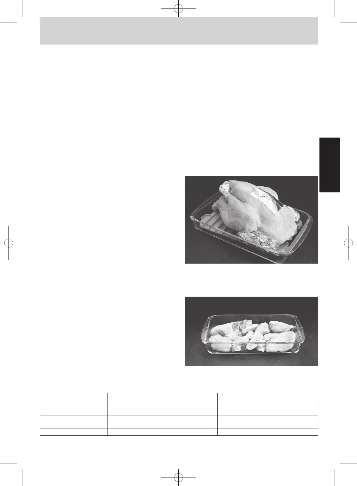 Указания по приготовлению отдельных частей птицы в микроволновой печи