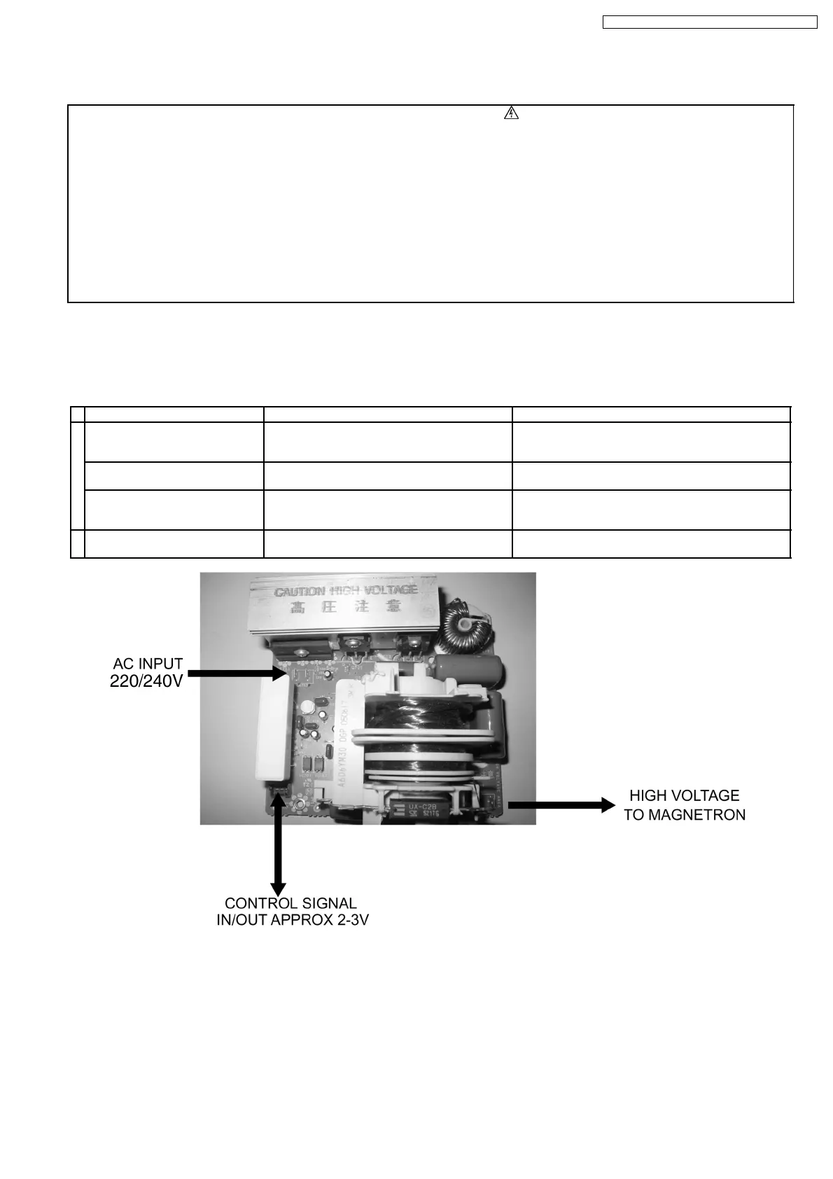 3. Be careful of the high voltage circuitry, taking necessary precautions when troubleshooting.
