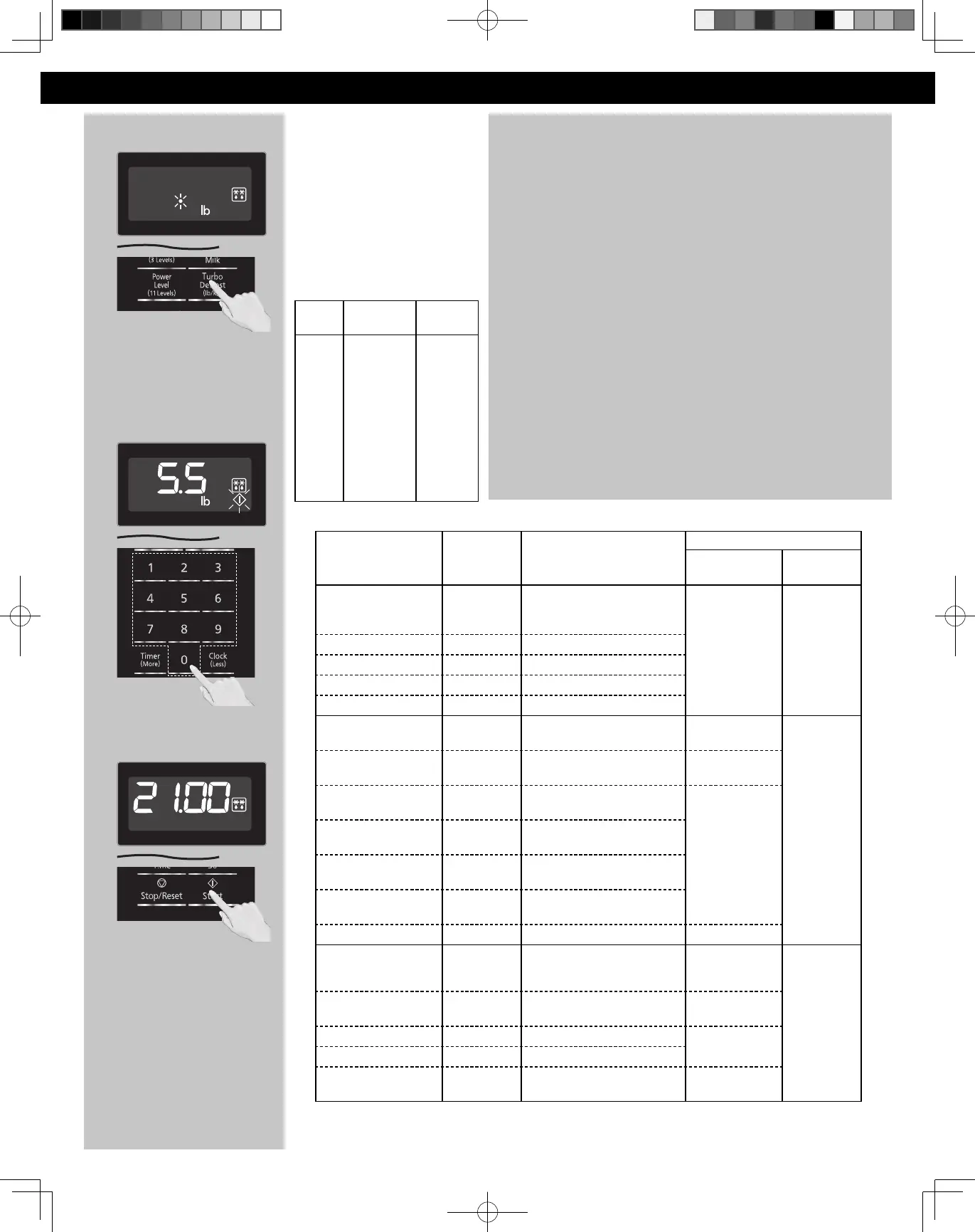Panasonic NN-ST74LS - Defrosting and Timer Functions