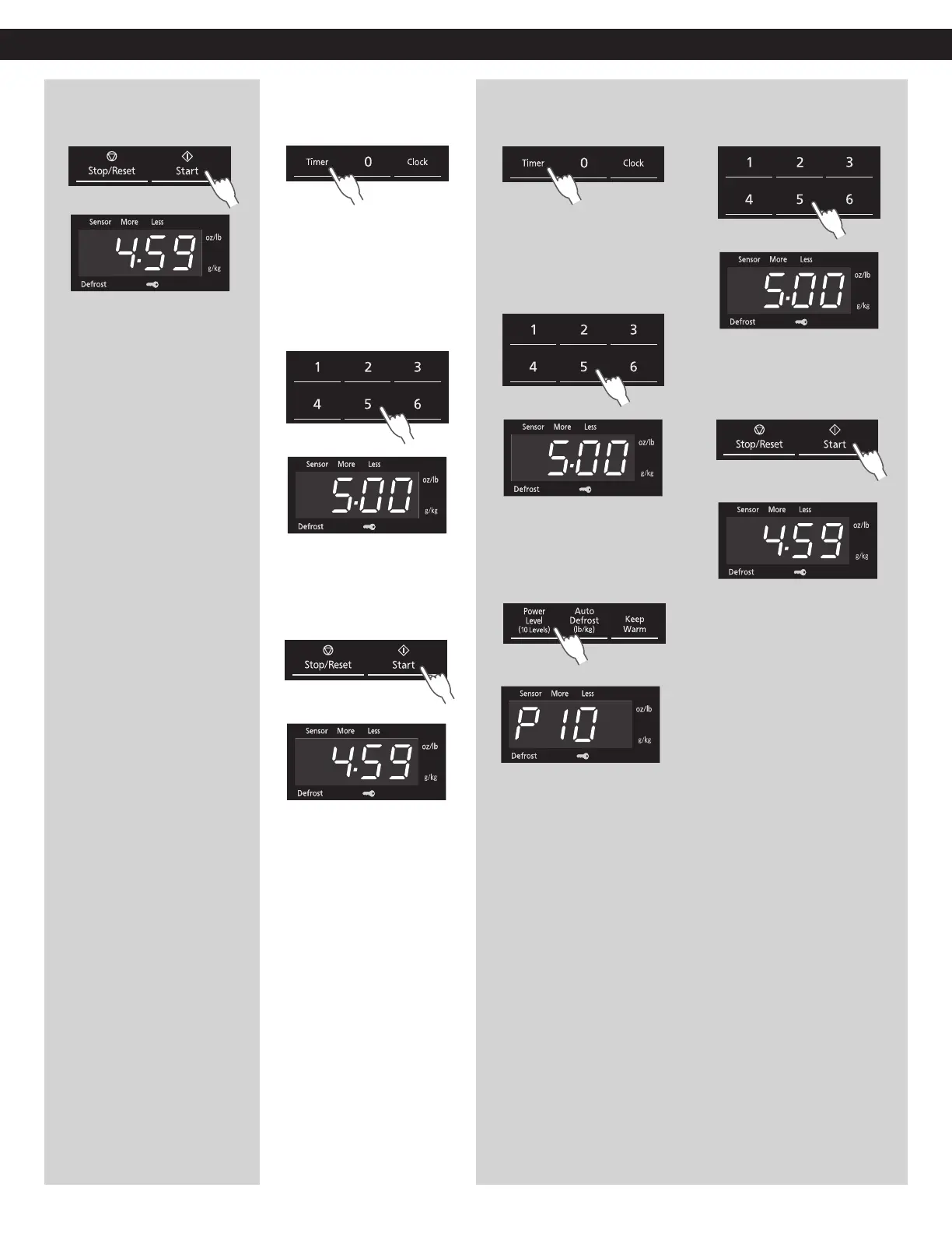 • For defrosting, use P3
