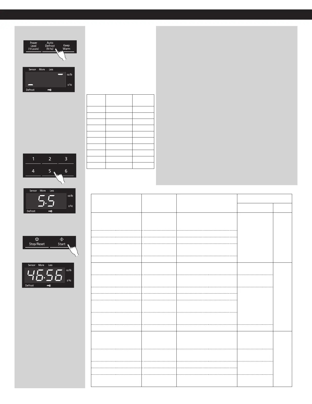the Defrosting Chart below.