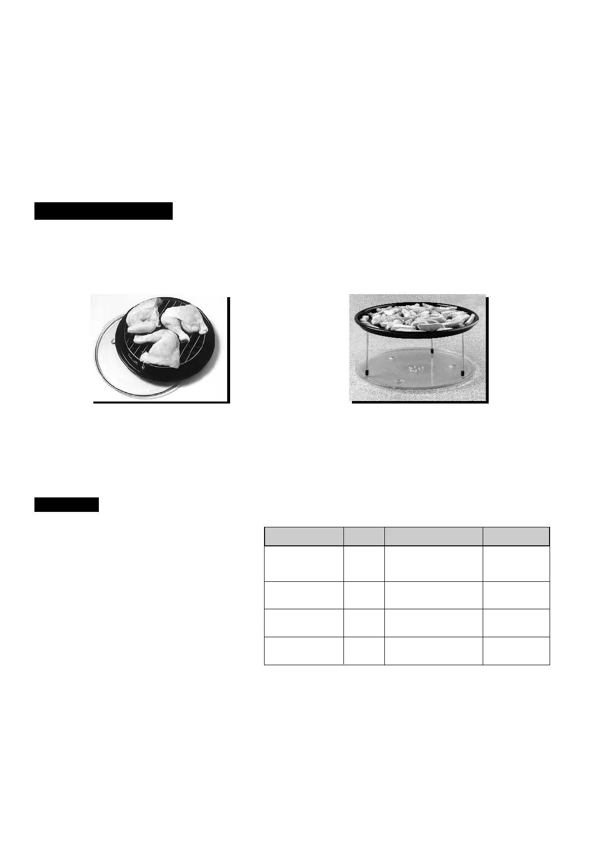 When using TURBO-BAKE the Glass Turntable should be in position and must have the Metal Tray placed on top,