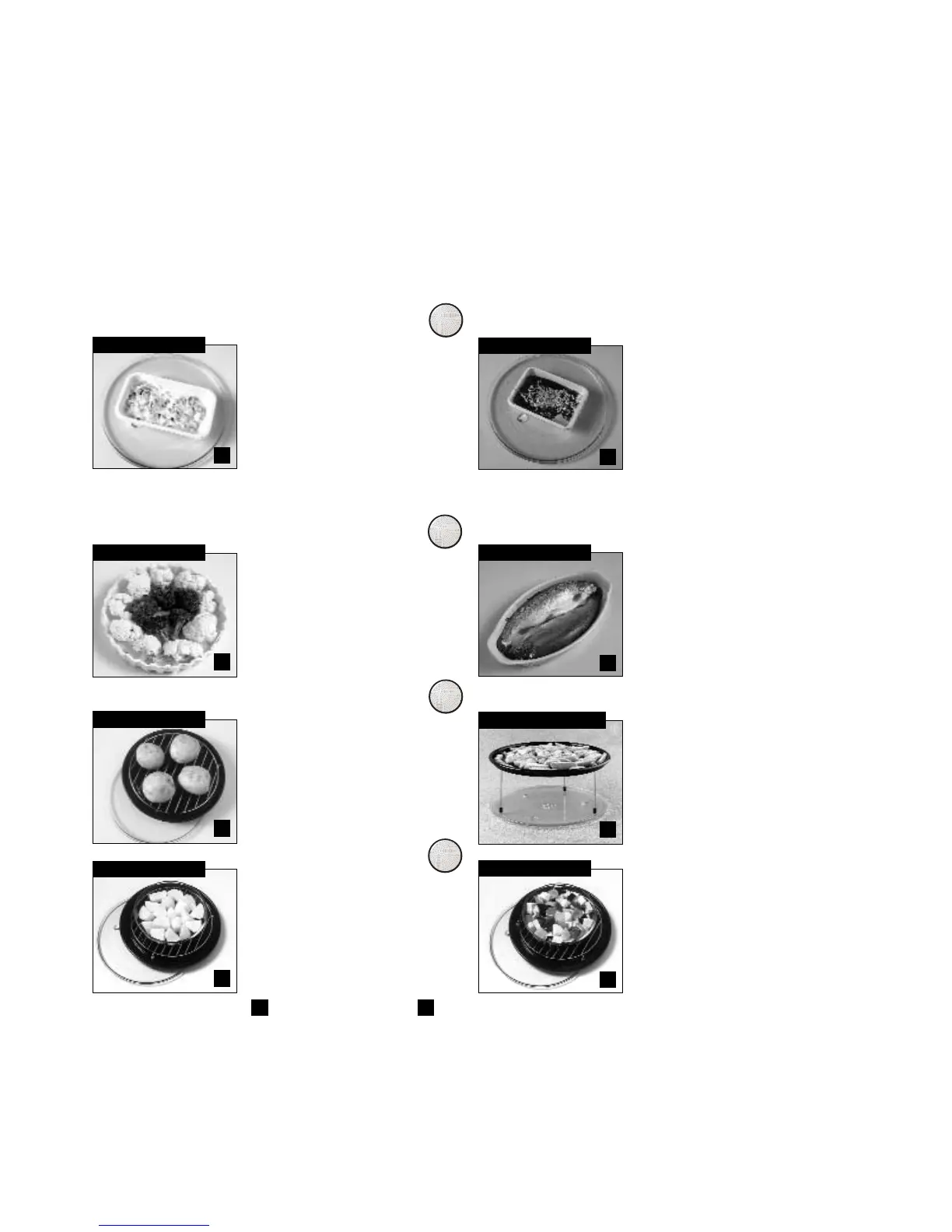 Auto Programs must ONLY be used for the foods described below. Programs 1-4 use Microwave power only, Programs 5-8 use Combination of