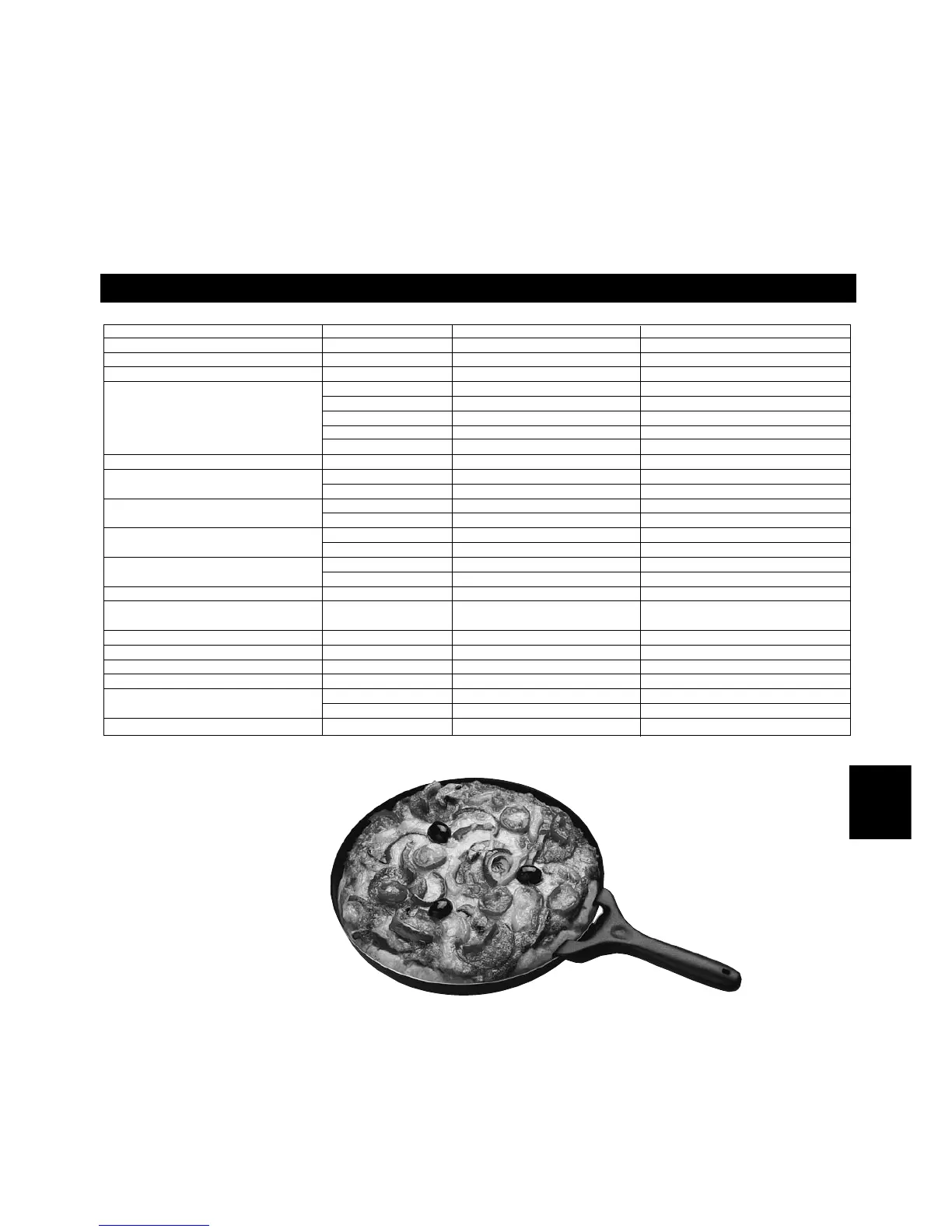 TABELA DE COZEDURA PARA A SUA BASE PARA PIZZAS (NN-F663/NN-F623)
