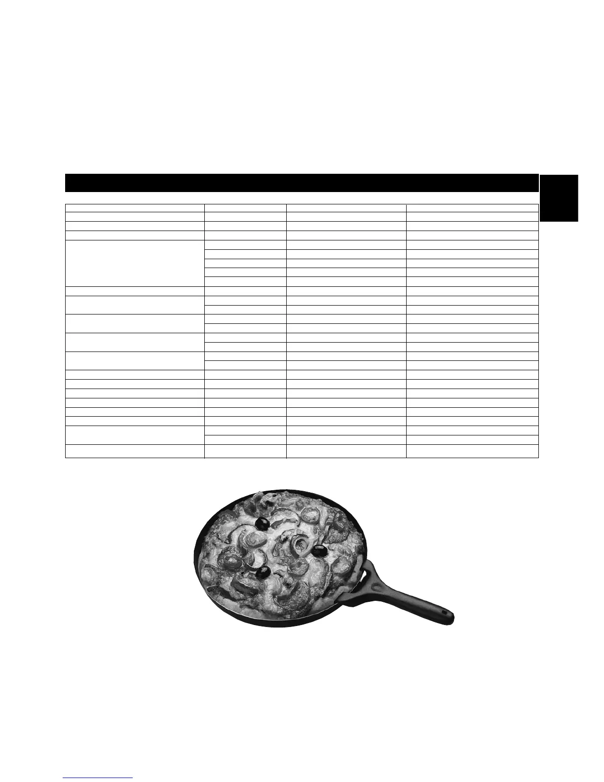 Cooking Chart For Your Pizza Pan (NN-F663/NN-F623)