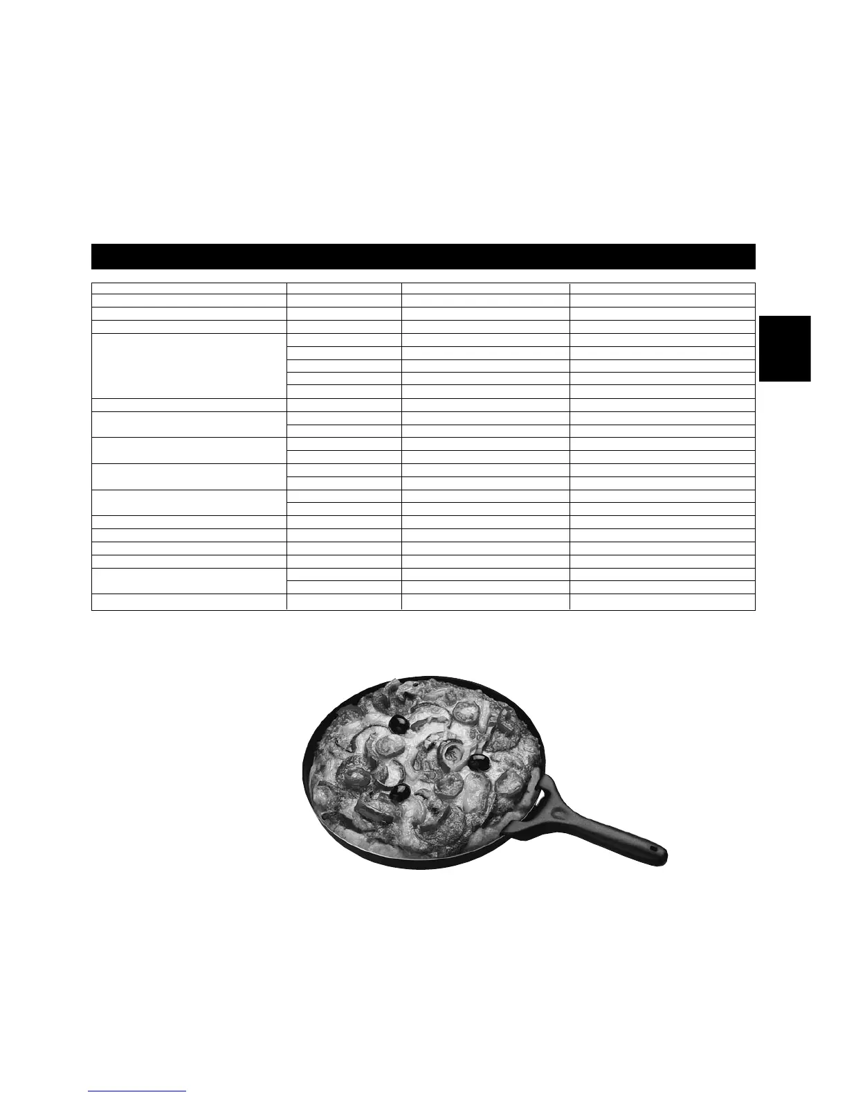 Tabelle für die Zubereitung von Lebensmitteln mit den Bräunungsteller (NN-F663/NN-F623)
