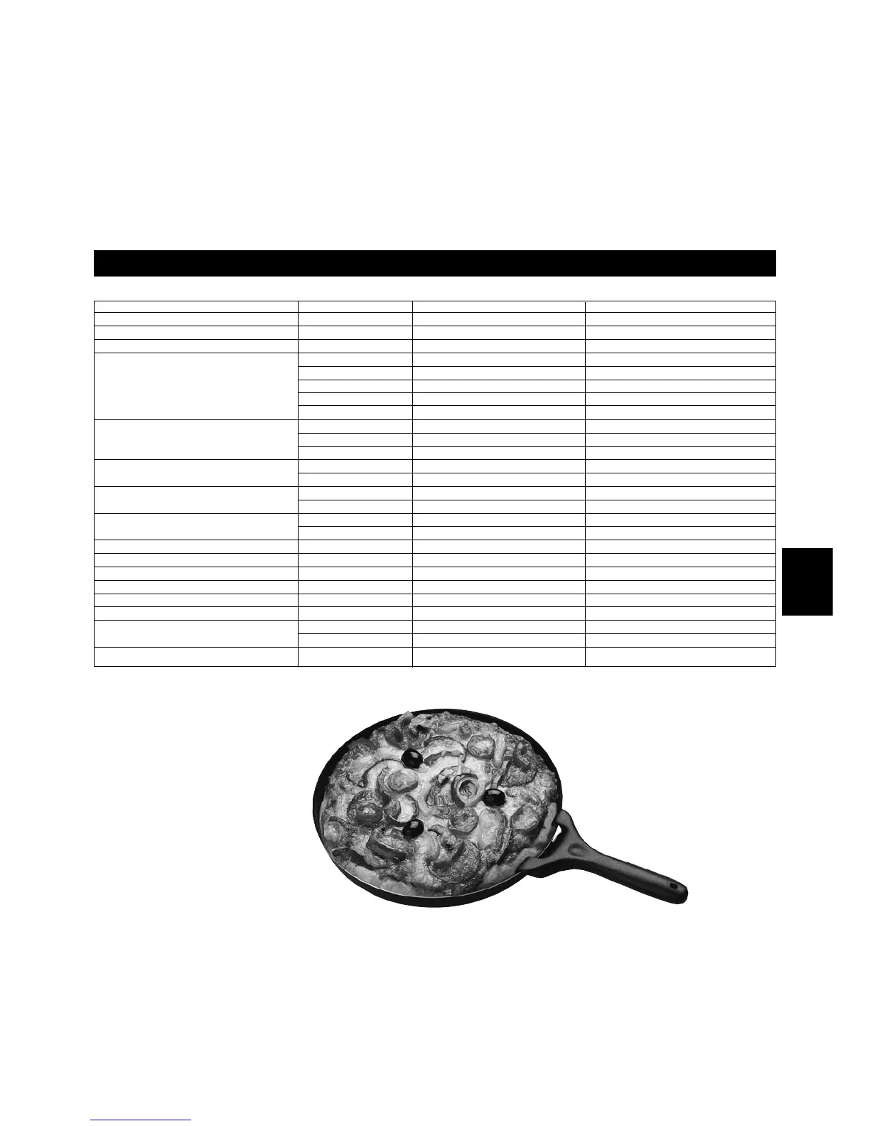 Teglia per pizza - tabella di cottura (NN-F663 / NN-F623)