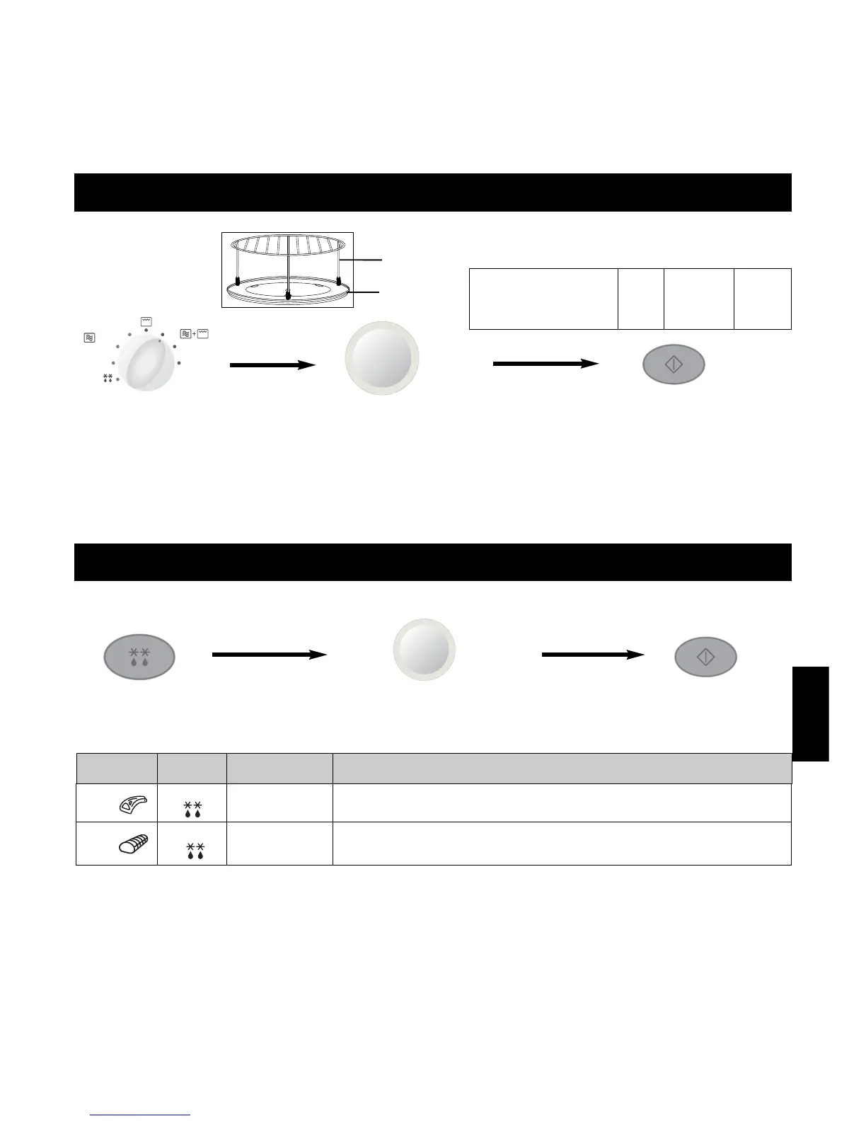 tillagningstiden. Symbolerna för mikrovågor, grill och trådgaller visas