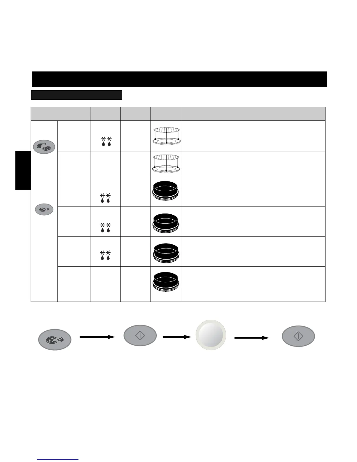 Oppvarming, sprøsteking av bunn og bruning av toppen på