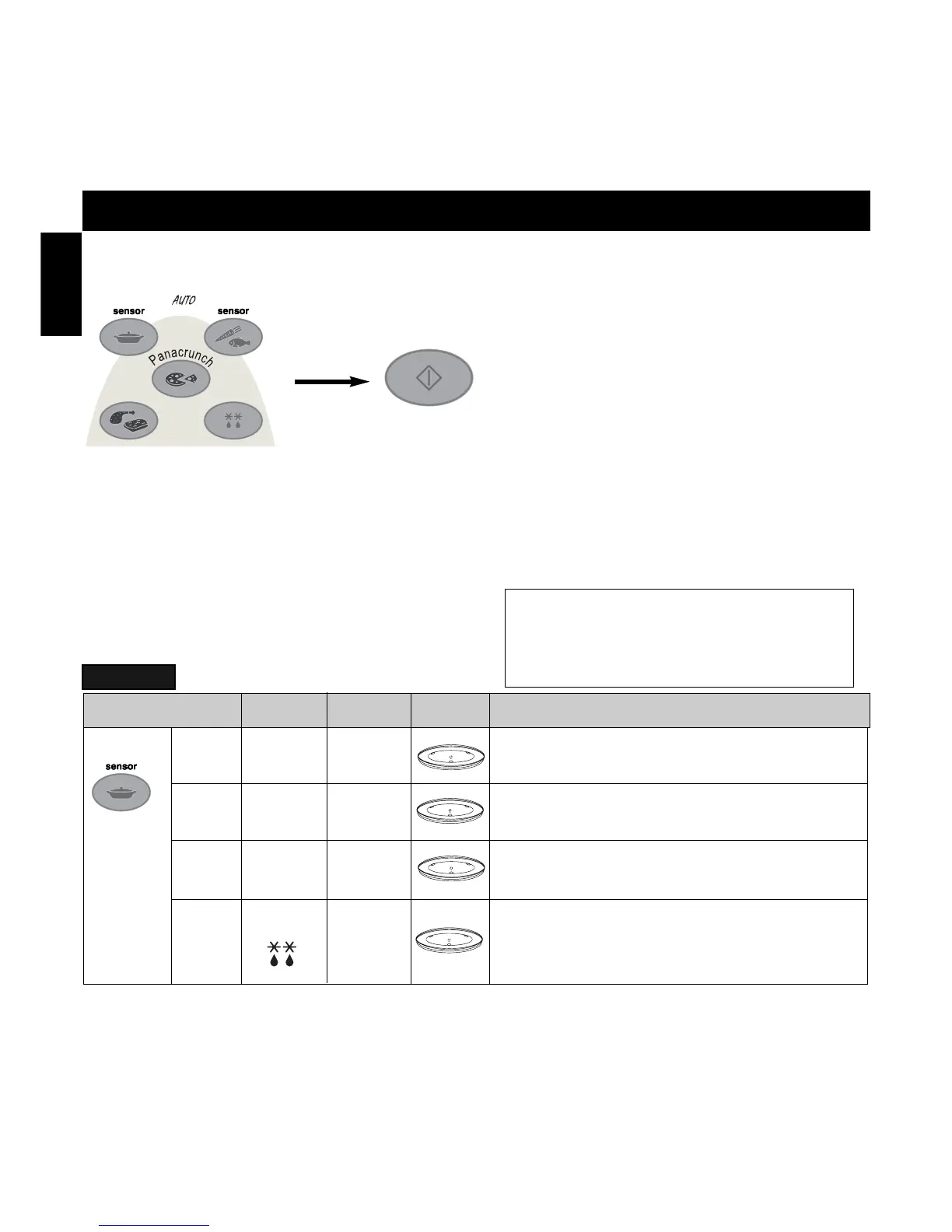 Når et af disse programmer bruges, udregner en fugtighedssensor den mikrobølgeeffekt og tid der passer til den portions mad der