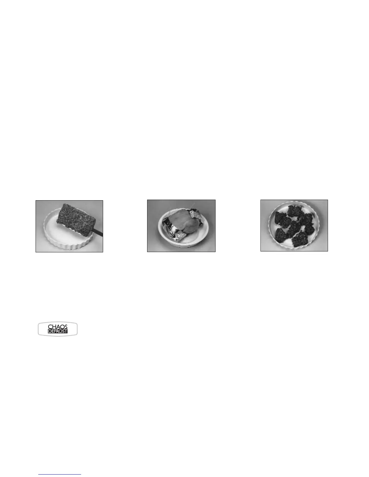 The CHAOS defrost pad should be pressed to select the correct category and then enter in the weight of the food in grams or