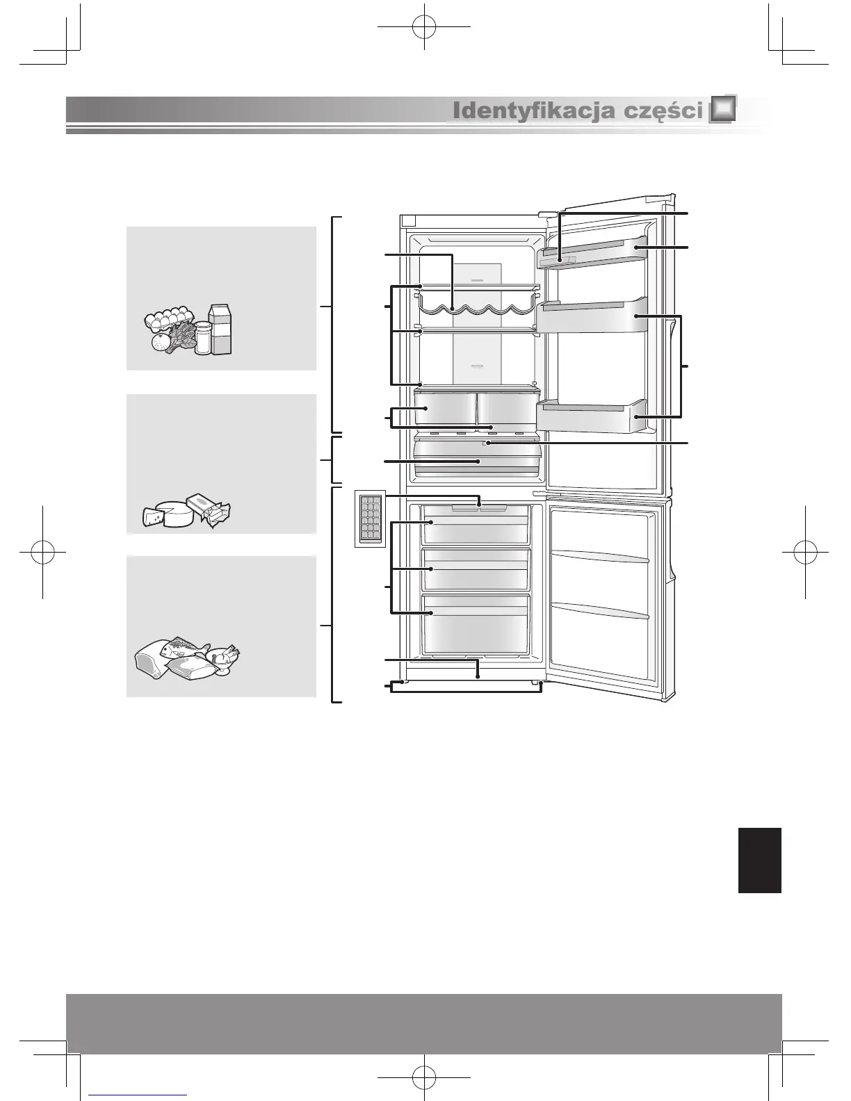 4Pojemnik komory chłodniczej 8Regulowane nóżki <Część przesuwna