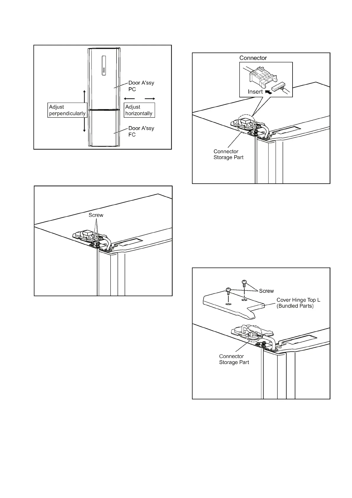 b. Open Door A’ssy PC, put Cover Hinge Top L on this