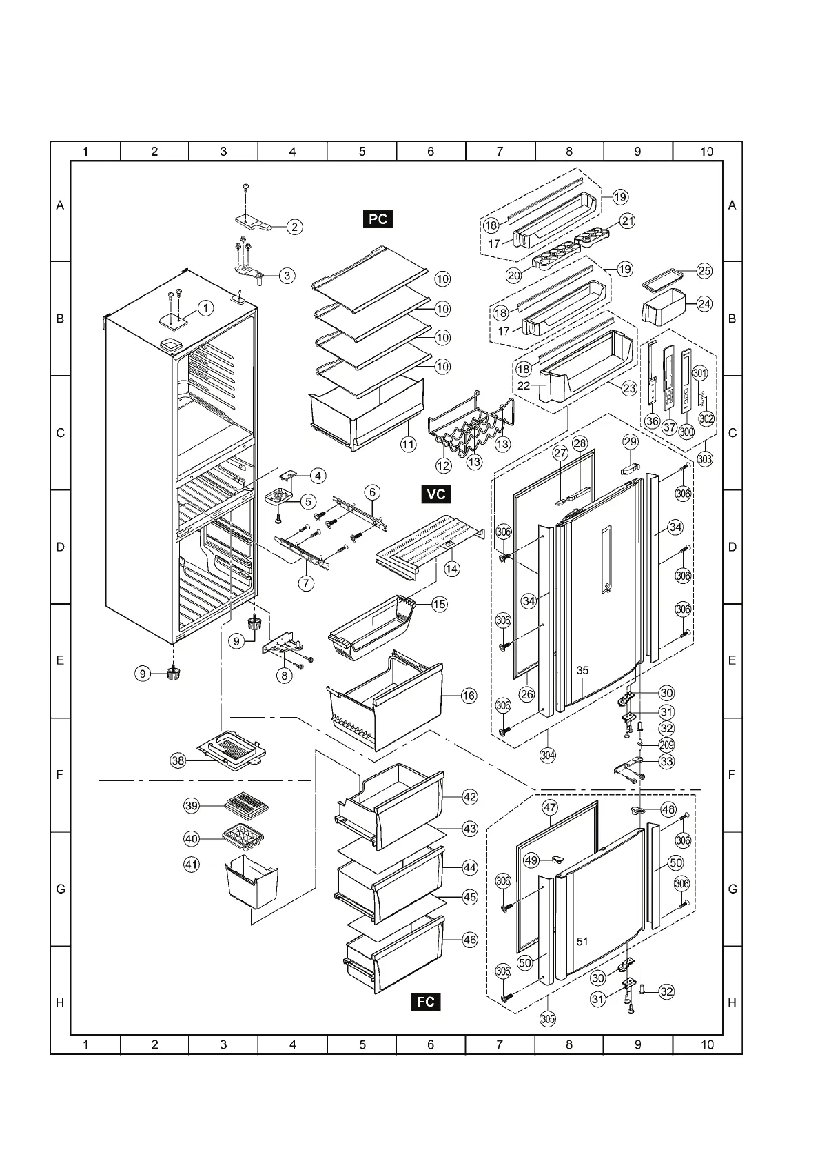 Panasonic NR-B32FE2 - Exploded View and Replacement Parts List