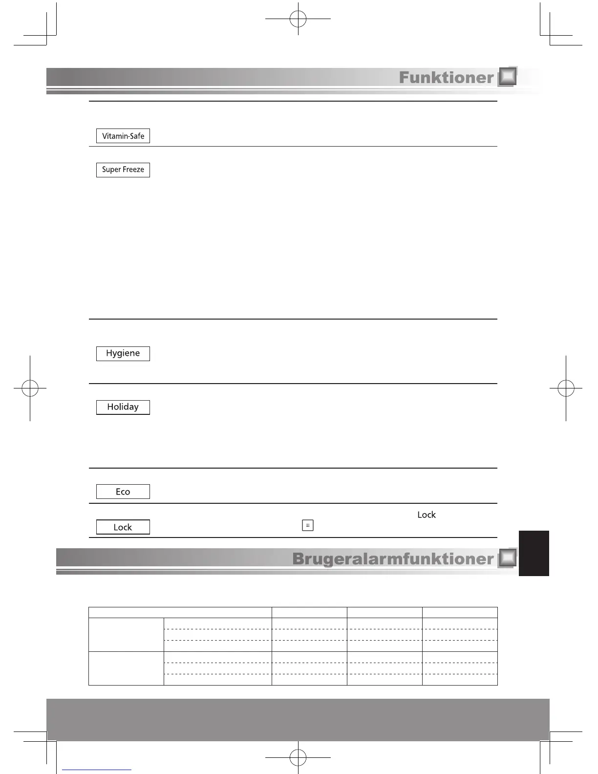 • Virkningen på de opbevarede fødevarer kan reduceres, hvis superfrysningstilstanden indstilles