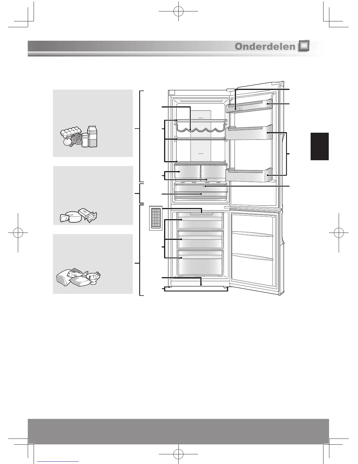 Onderstaande afbeelding is gebaseerd op model NR-B29SG2 en kan enigszins verschillen met uw koelkast.