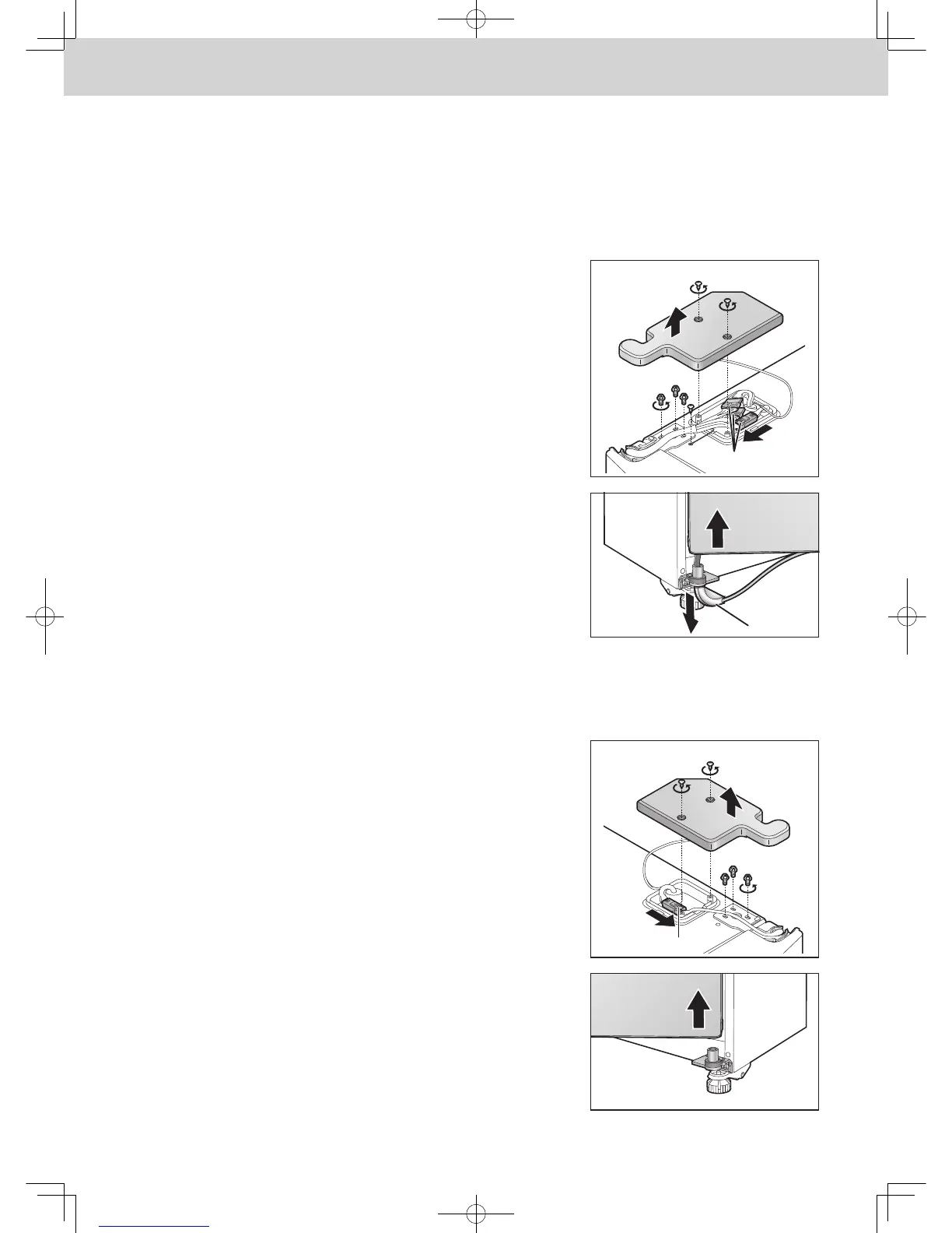 ● Take care not to bend the hinges or damage the water supply hoses.