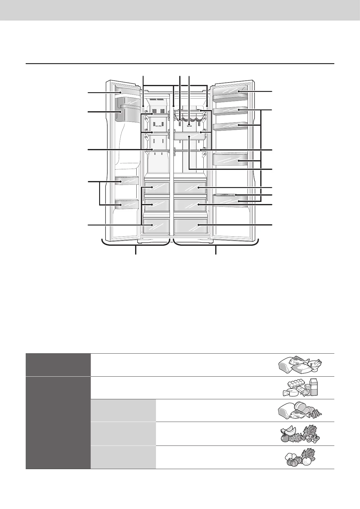 ● A much larger space can be made available for use inside the freezer by removing the rst and second drawers.
