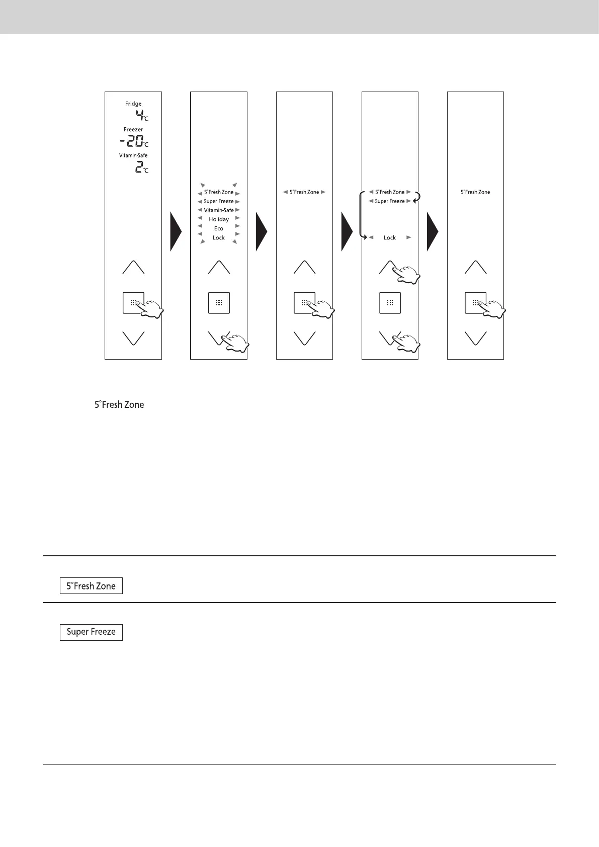 Om du trycker på 5° Fräschzon tänds vitaminlamporna (blå och gröna LED-lampor) för att upprätthålla C-vitamin i