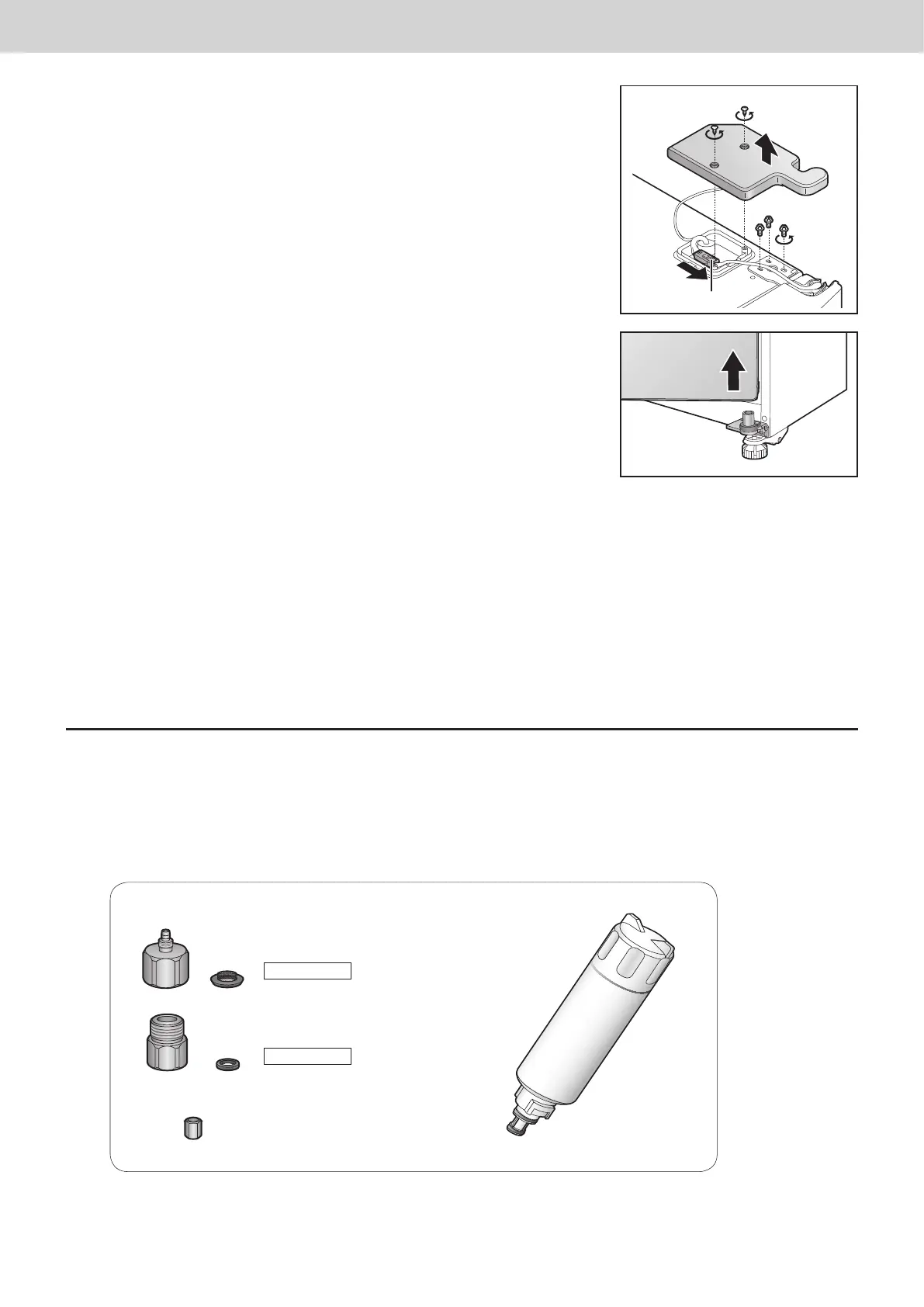 køleskabet skal installeres på et sted, hvor vandtrykket er under omkring 150 kPa (22 psi), skal der installeres en trykpumpe, så det