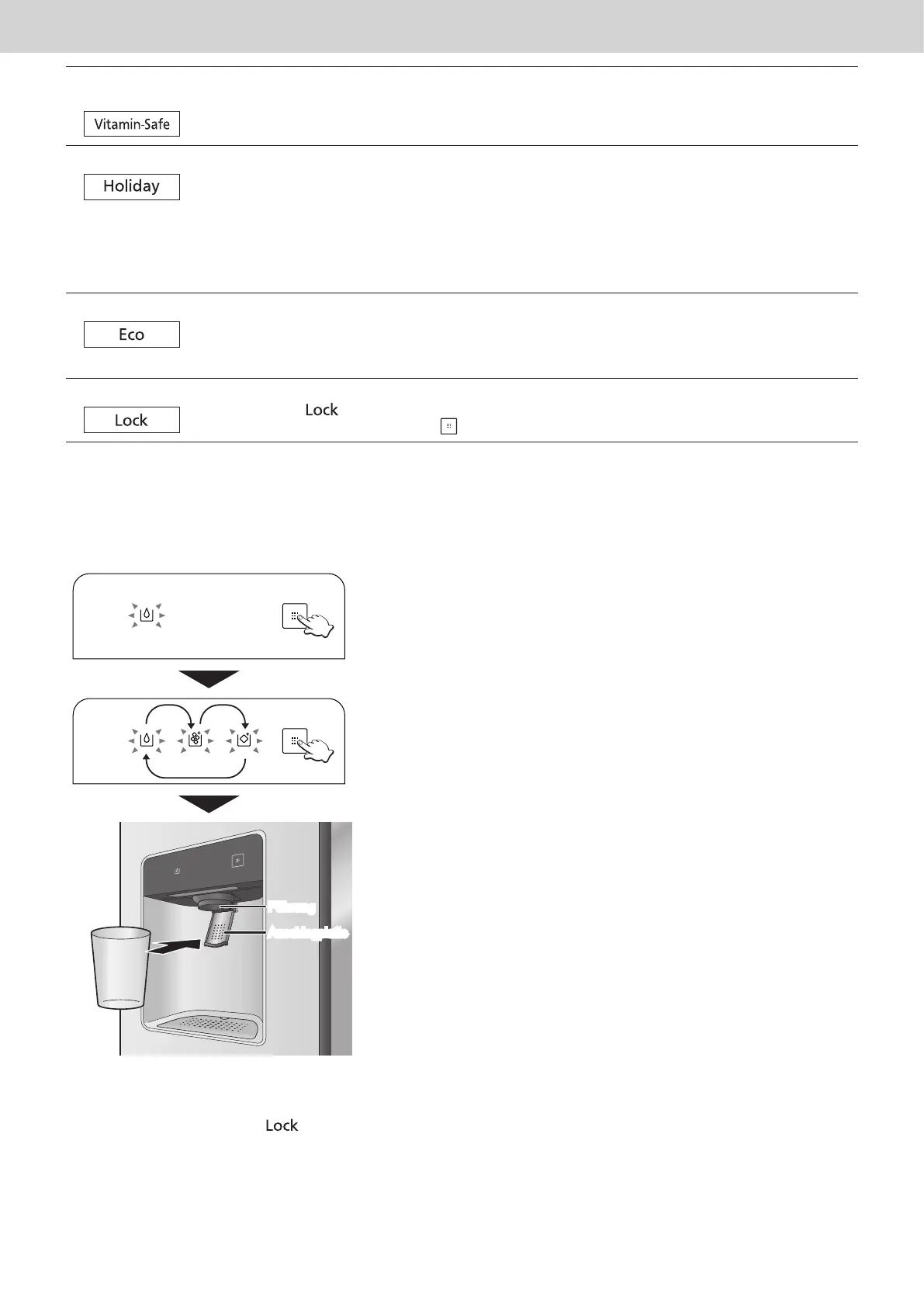 Die Tasten an dem Bedienfeld und der Eis-/Wasserspenderdisplay können gesperrt werden. Wenn die Kindersperre