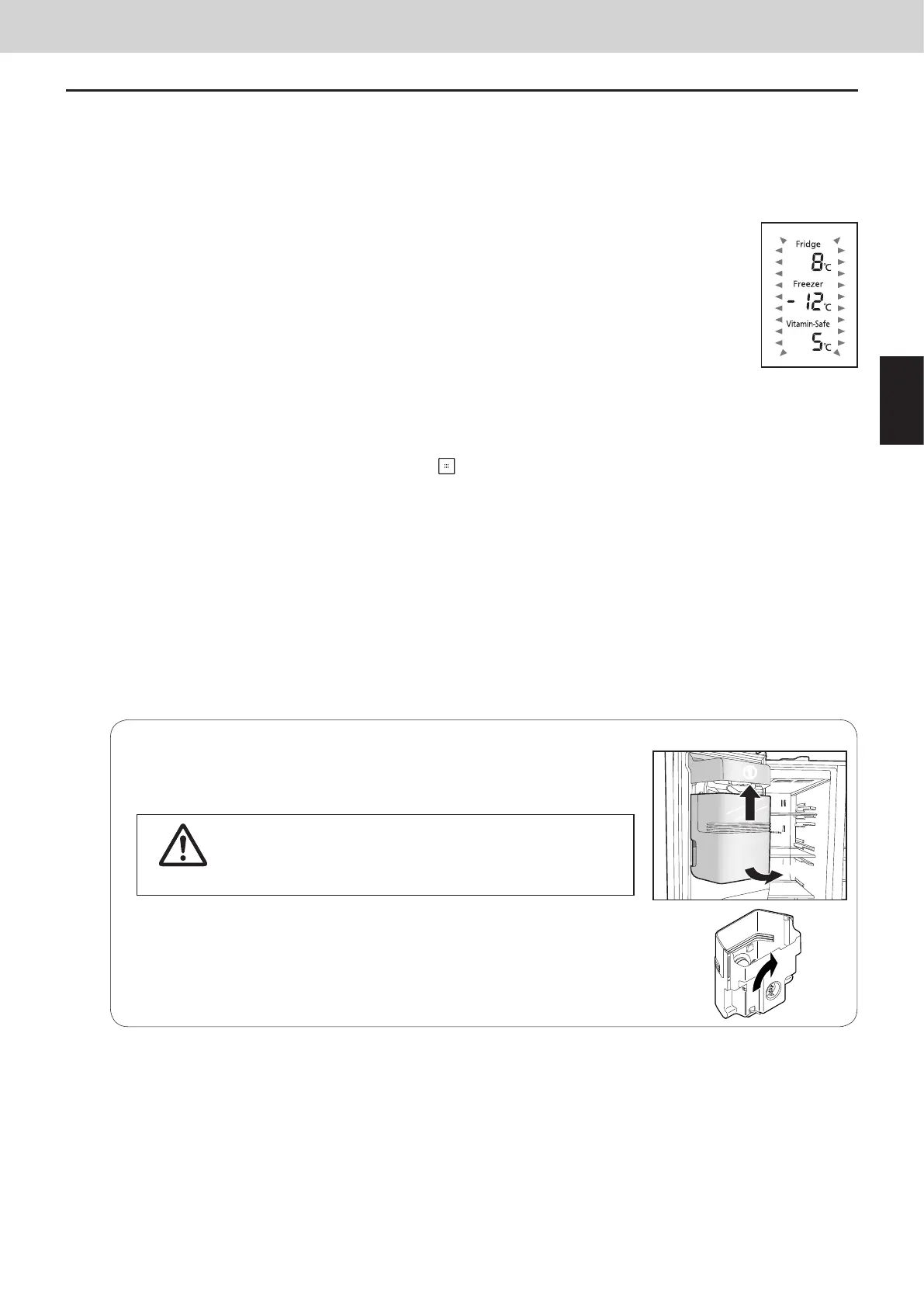 ● Steek het ijsvak volledig in de oorspronkelijke positie na de knop 90 graden te draaien, die