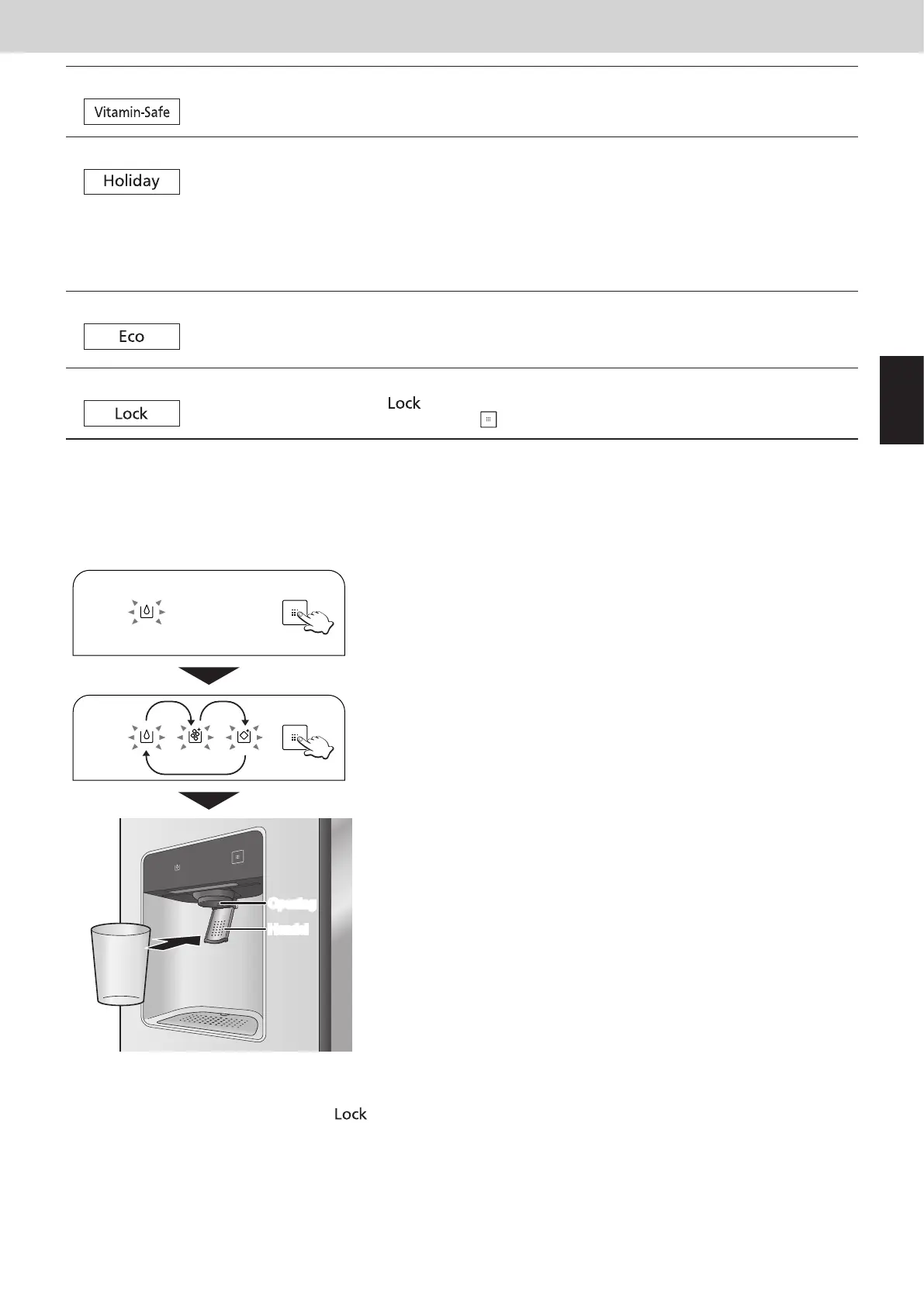 De toetsen op het bedieningspaneel en het paneel voor de ijs/waterkraan kunnen worden geblokkeerd. Wanneer het