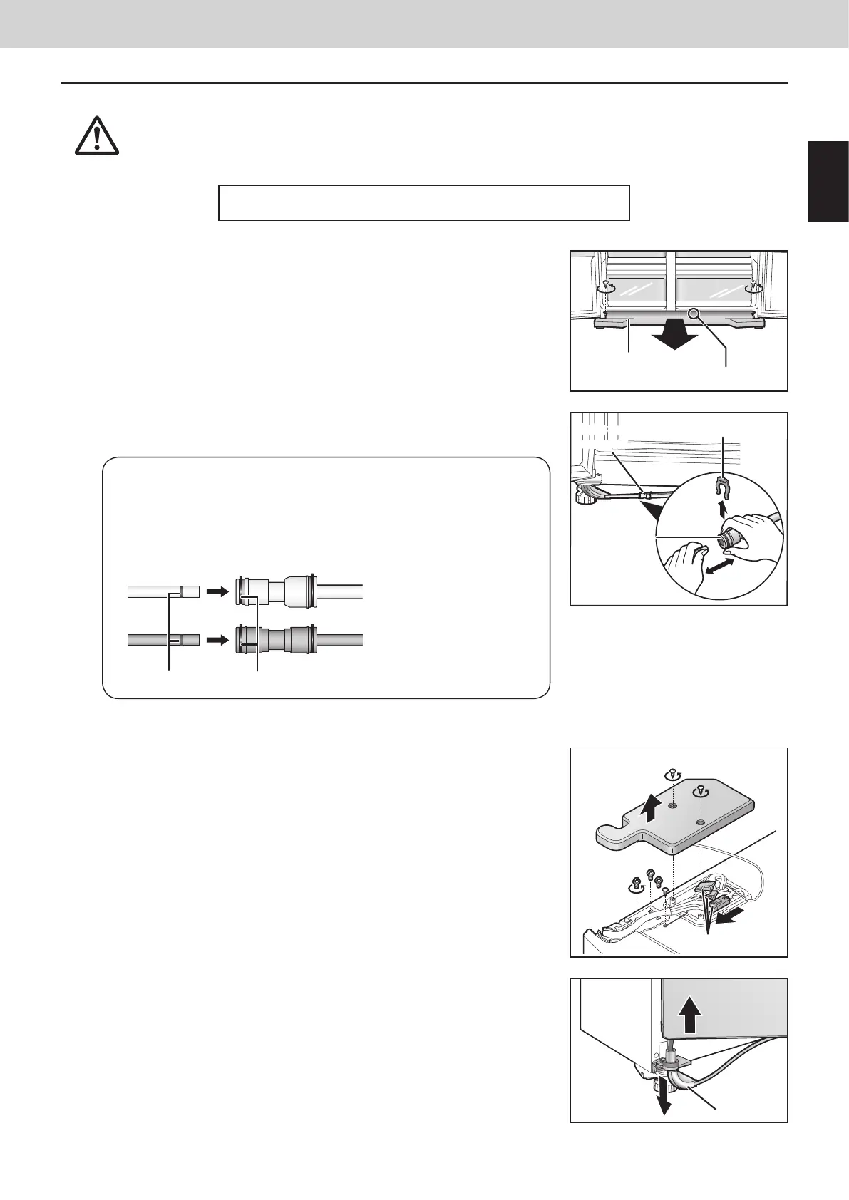 Before removing the doors, be absolutely sure to check that the power of the refrigerator has been turned off.