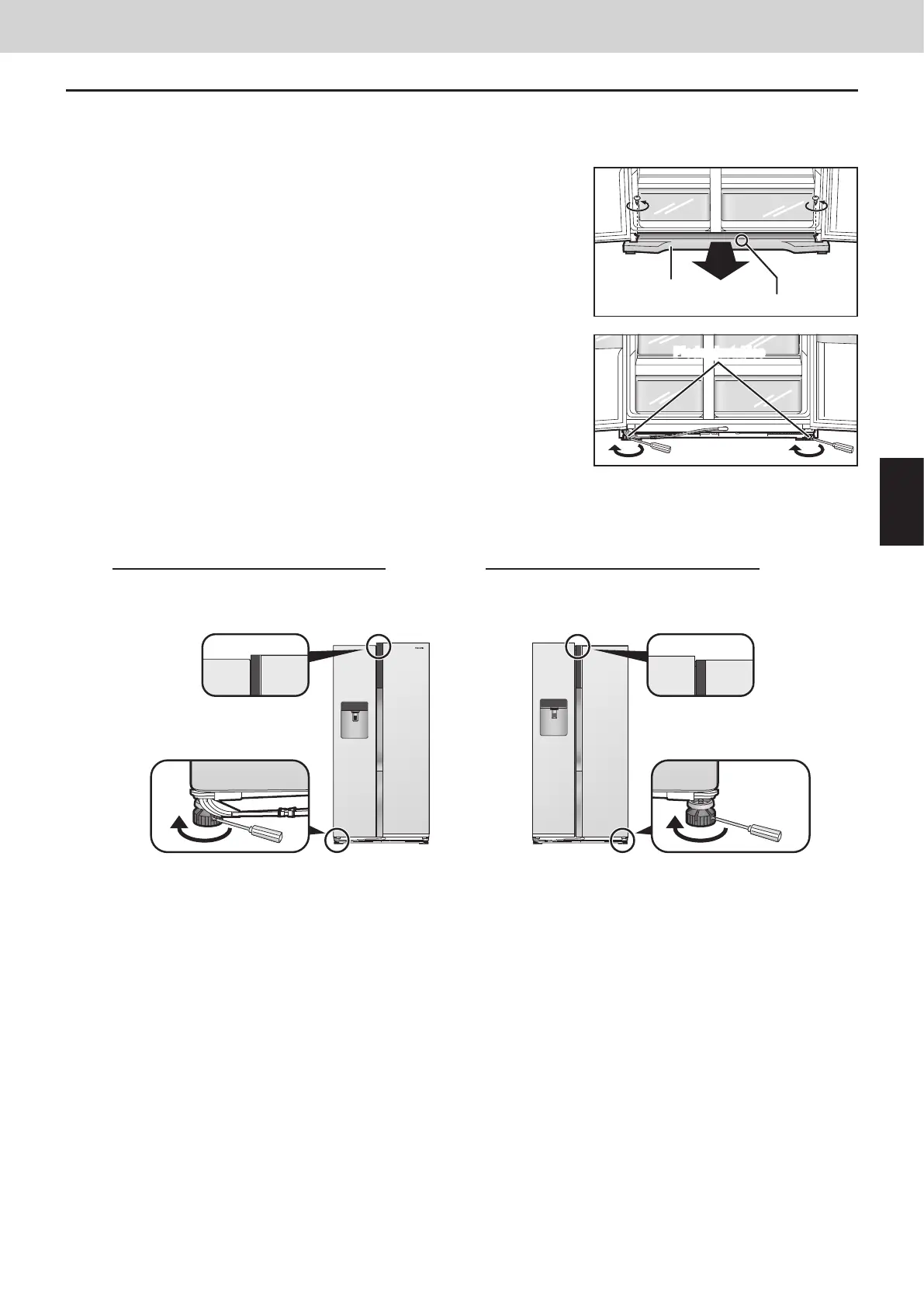 Tournez les pieds ajustables de manière que le réfrigérateur soit installé au ras du sol.