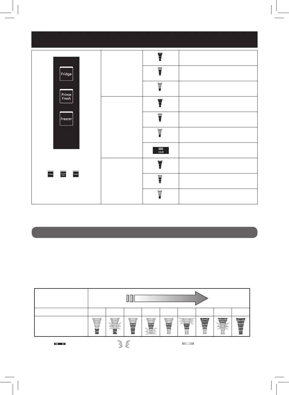 3. Set “9 levels” mode following below table mentioned by pressing the “Freezer” button.