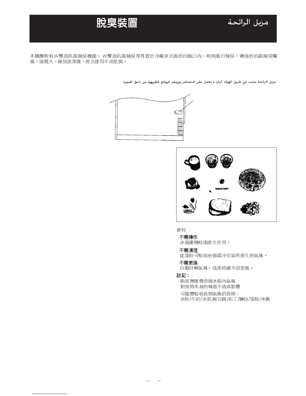 * Deodorizer ini hanya membasmi bau dari lemari pendingin ini saja.