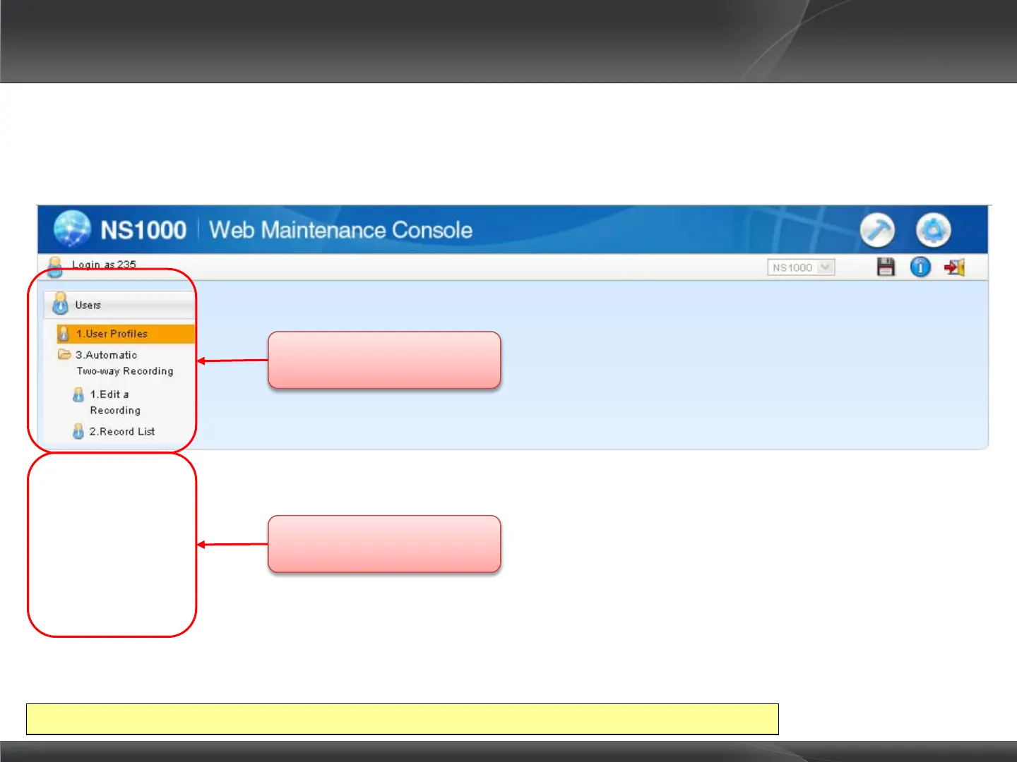 For details of what can be changed via a User + 2-Way Rec profile, refer to the PC-Programming Guide