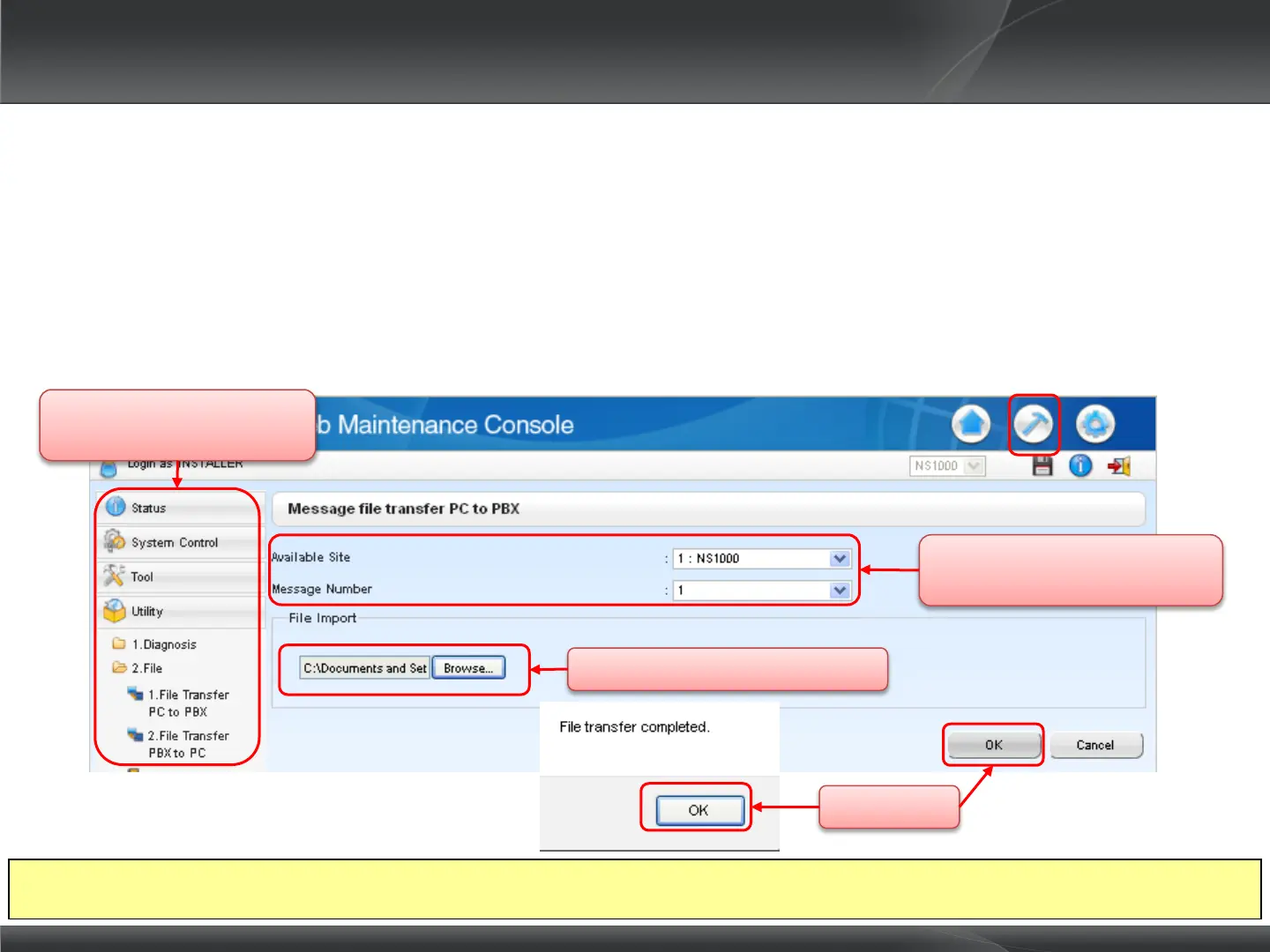 It is also possible to download MSG files from the PBX using the ‘MSG Transfer to PC’ Utility.