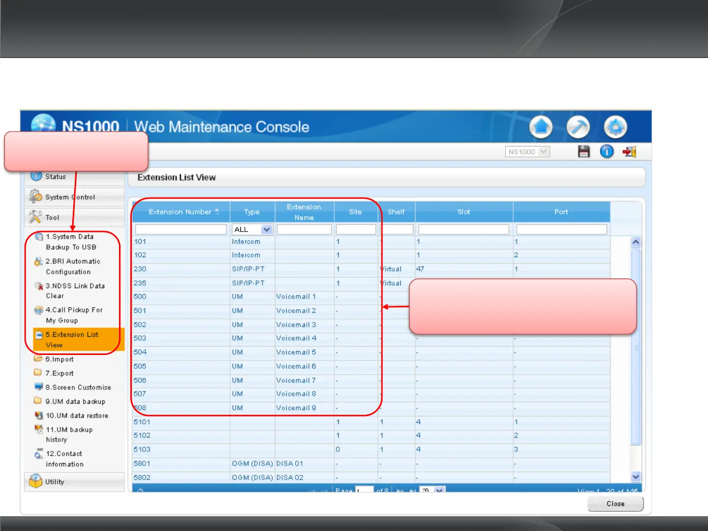 Panasonic NS1000 - Extension List View