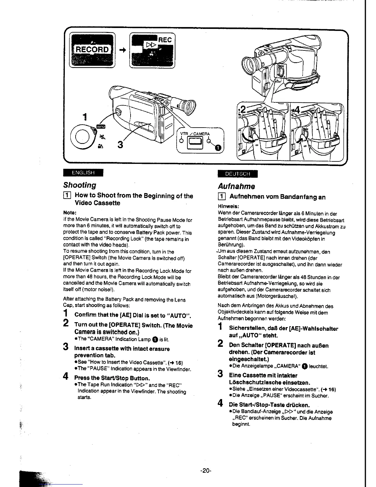 Panasonic NV-A1E - Shooting Procedures; How to Shoot from the Beginning of the Video Cassette