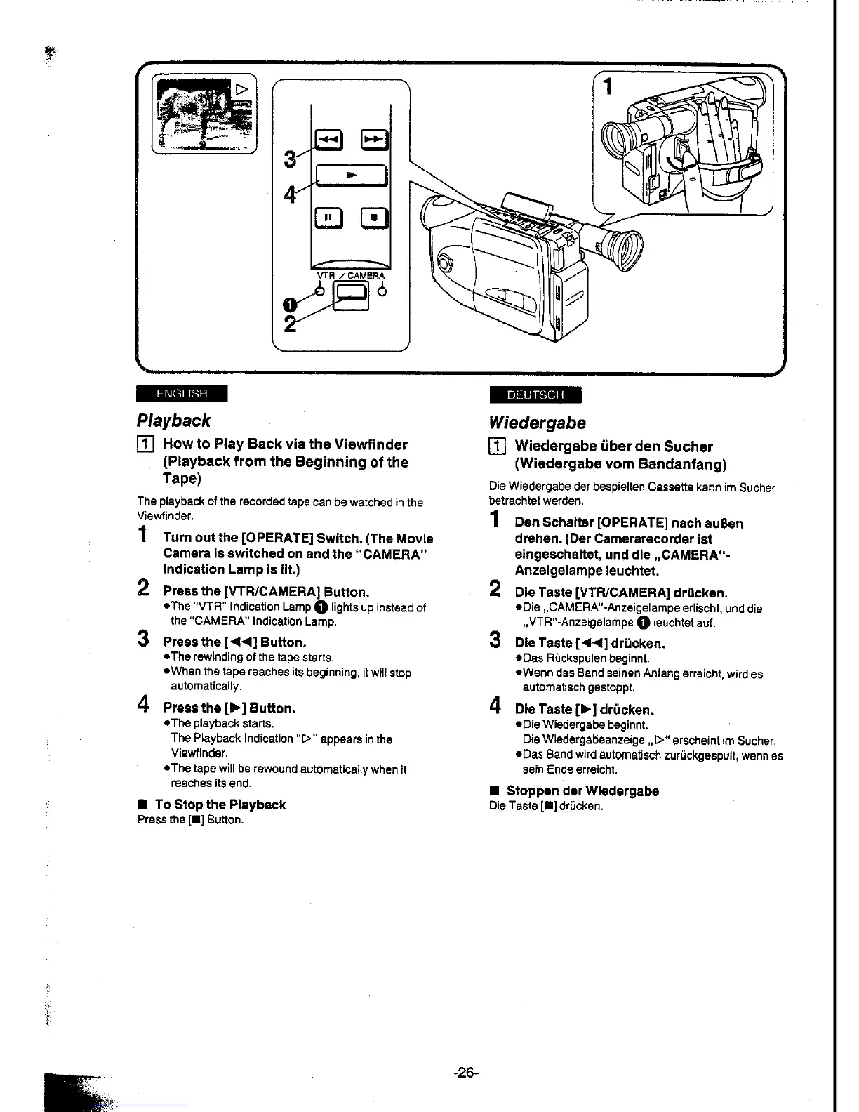 Panasonic NV-A1E - Playback Procedures; How to Play Back via the Viewfinder (Playback from the Beginning of the Tape)