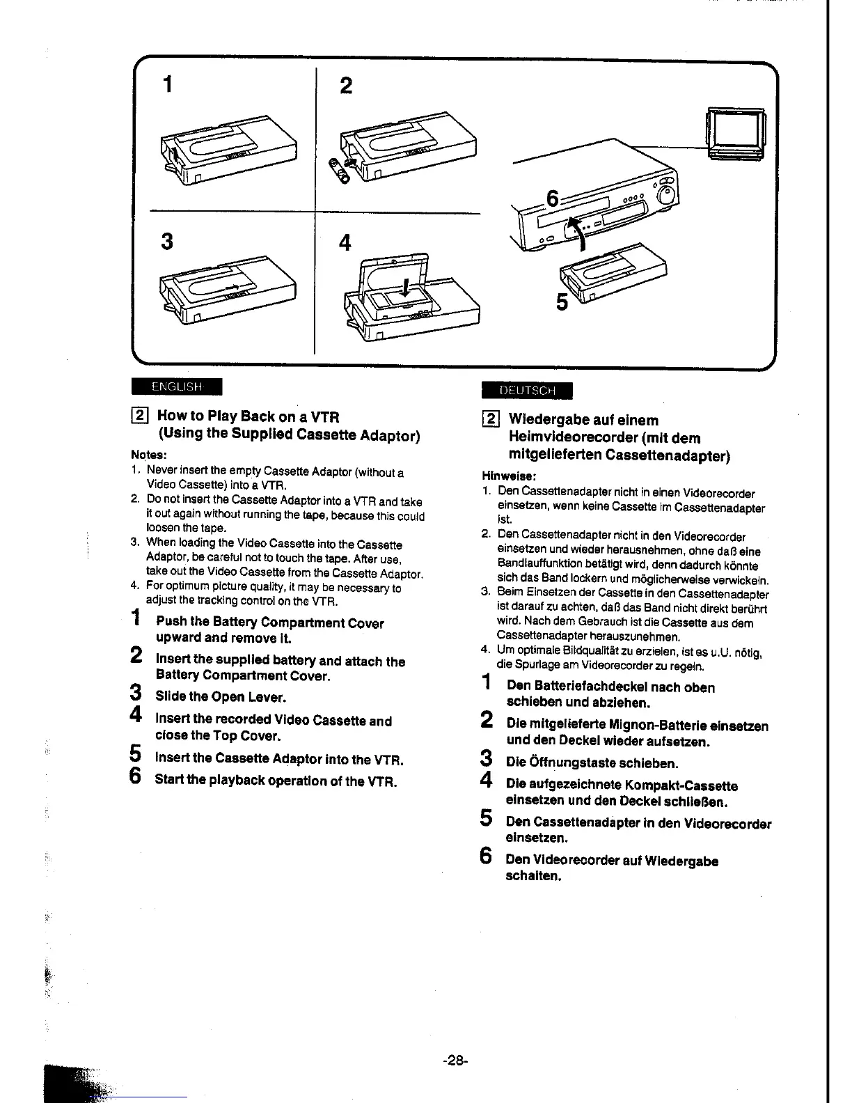 Panasonic NV-A1E - Playback Operations on VTR; How to Play Back on a VTR (Using the Supplied Cassette Adaptor)