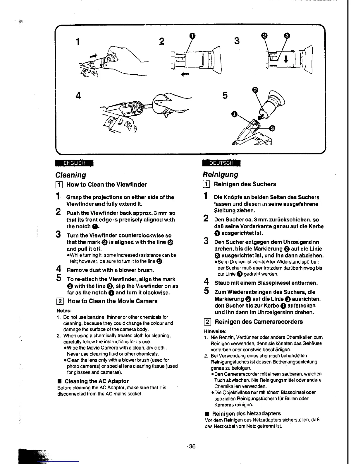 Panasonic NV-A1E - How to Clean the Viewfinder; How Fo Clean the Movie Camera; Cleaning the AC Adaptor