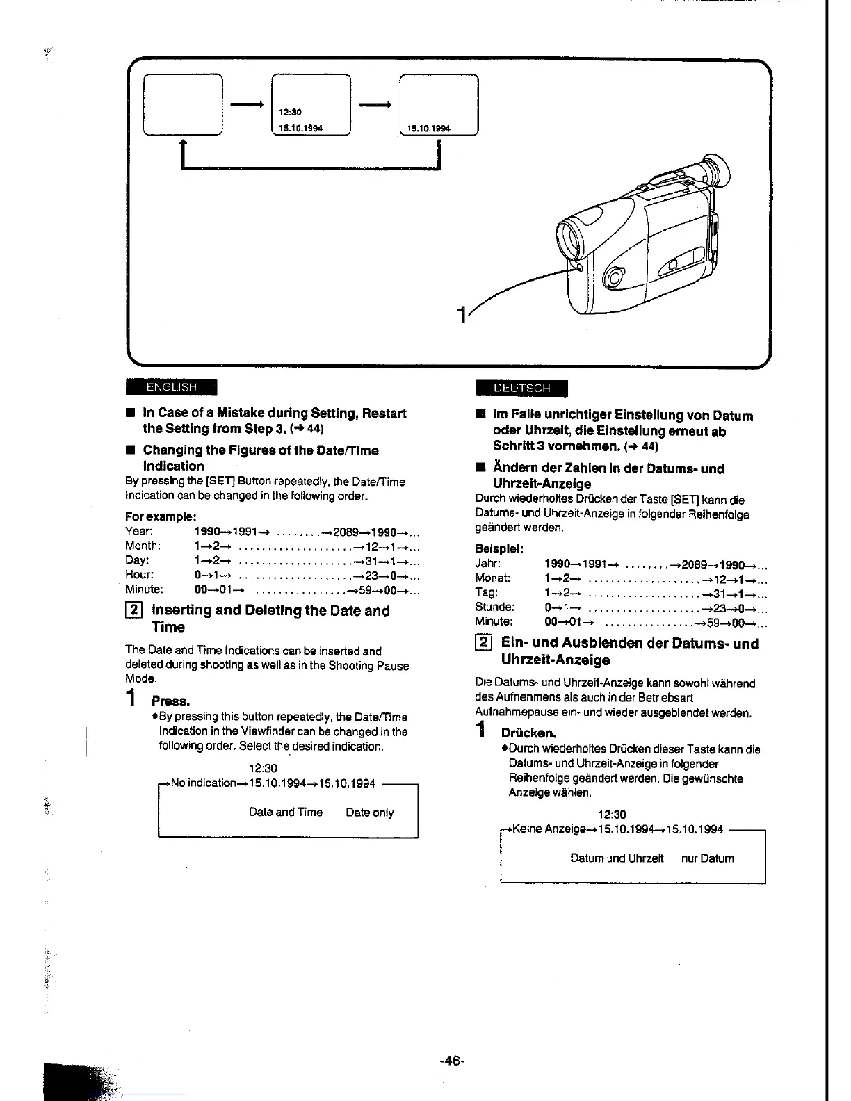 Panasonic NV-A1E - Changing the Figures of the Date;Time Indication; Inserting and Deleting the Date and Time