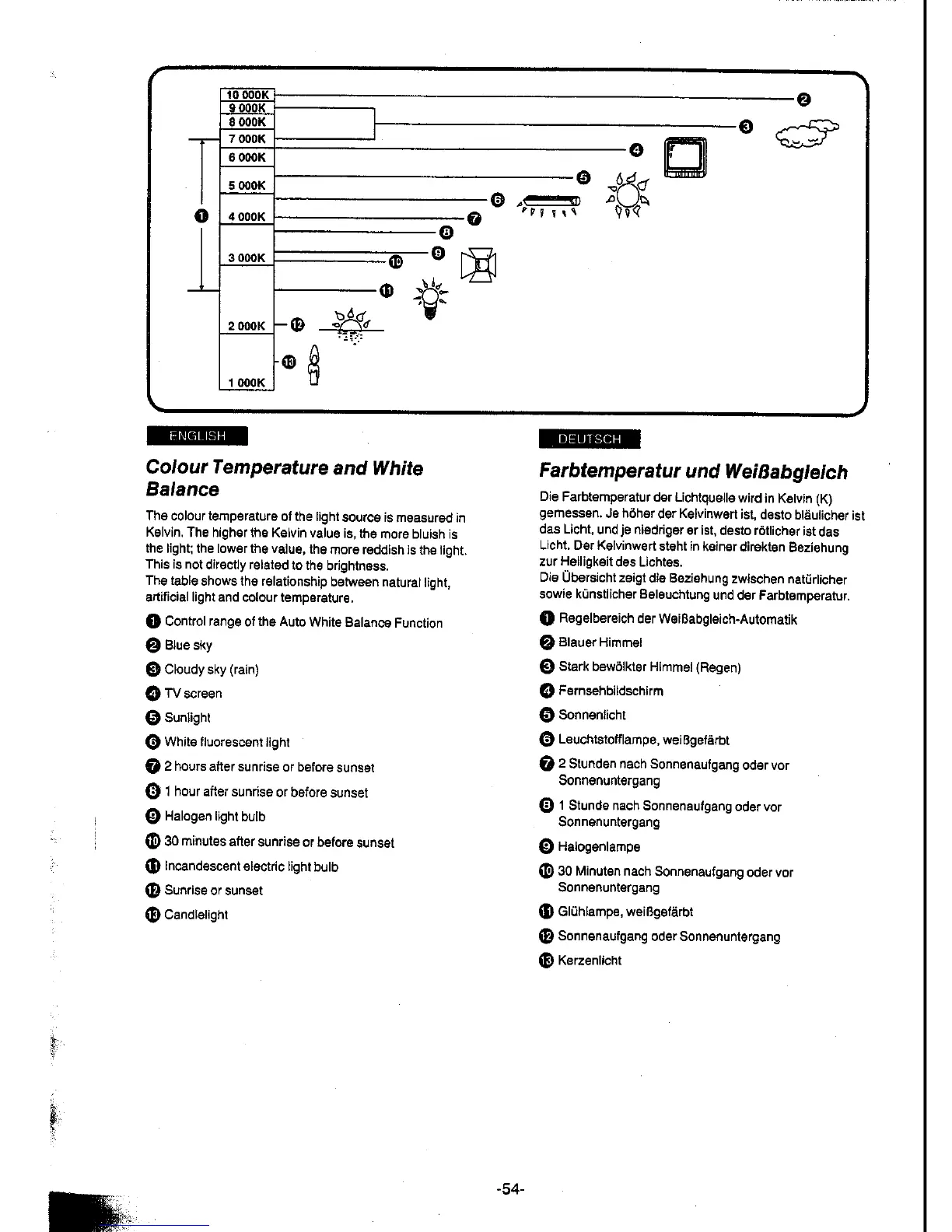 Panasonic NV-A1E - Colour Temperature and White Balance
