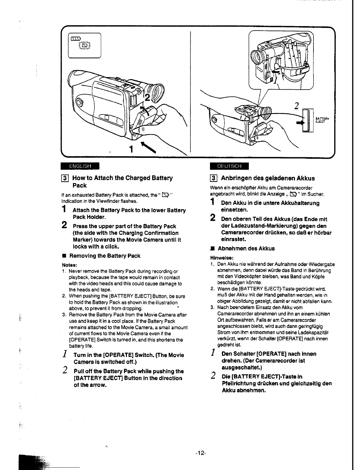 Panasonic NV-A1E - How to Attach the Charged Battery Pack