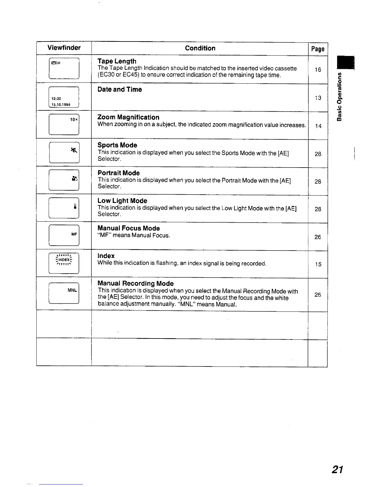 Panasonic NV A3A - Tape Length; Date and Time; Zoom Magnification; Sports Mode