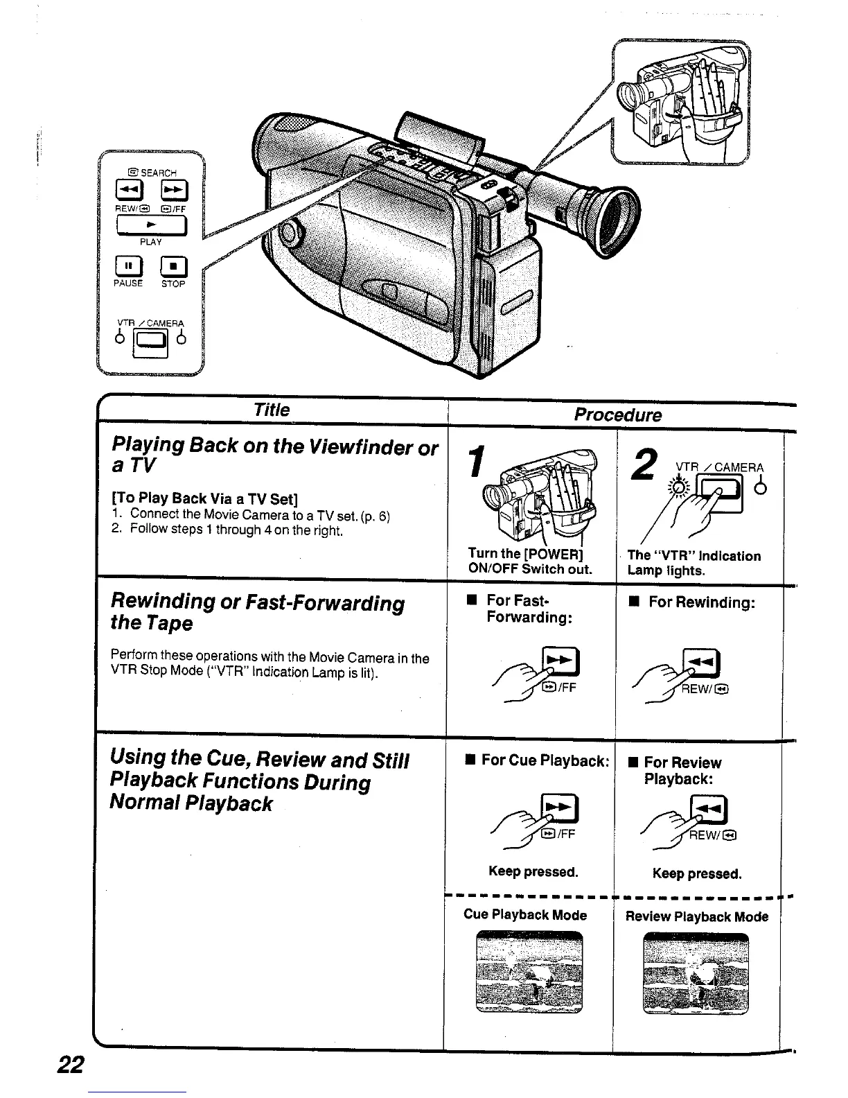 Panasonic NV A3A - Playing Back on the Viewfinder or a TV; Rewinding or Fast-Forwarding the Tape