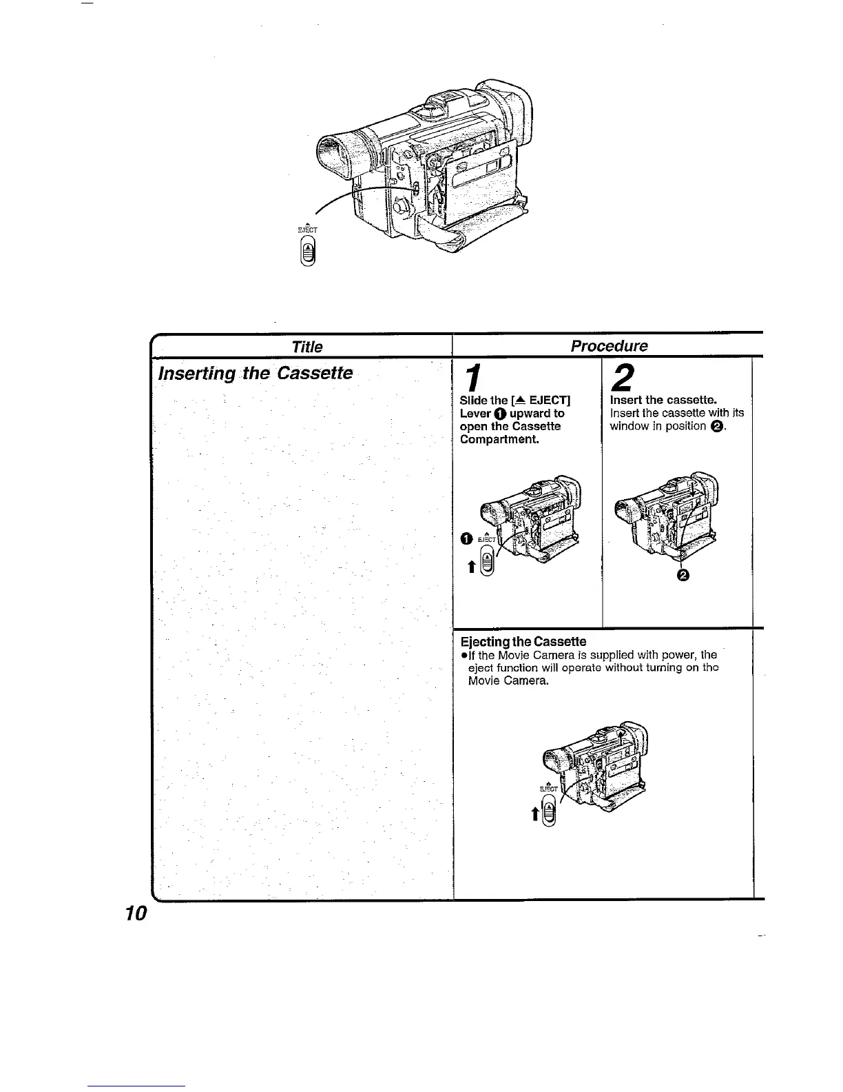 Panasonic NV-DA1B - Inserting the Cassette; Ejecting the Cassette