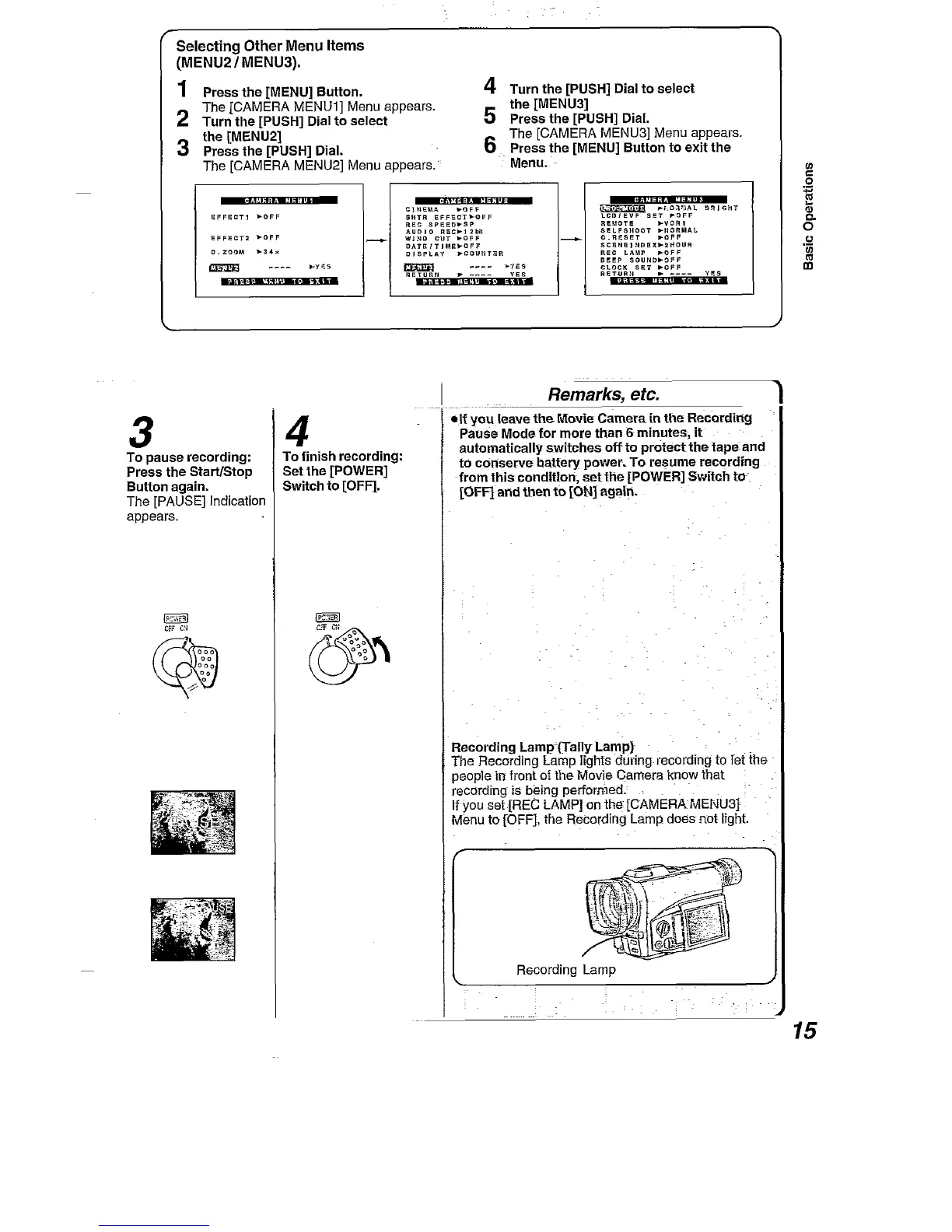 Panasonic NV-DA1B - Selecting Other Menu Items; Recording Lamp; Tally Lamp