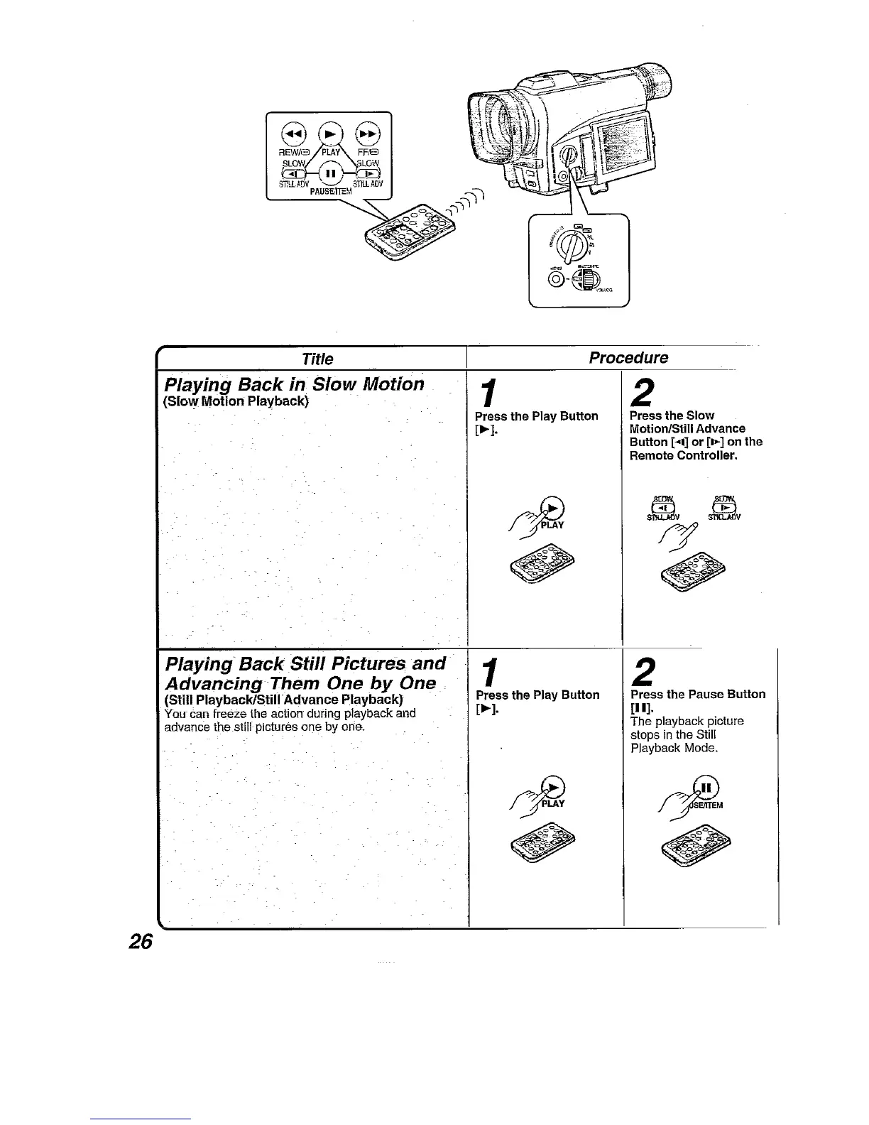 Panasonic NV-DA1B - Playing Back in Slow Motion; Slow Motion Playback; Still Playback;Still Advance Playback