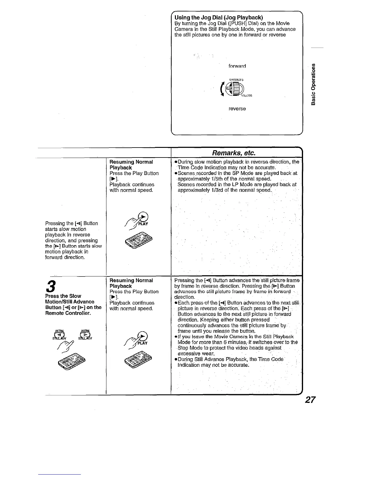 Panasonic NV-DA1B - Using the Jog Dial; Jog Playback