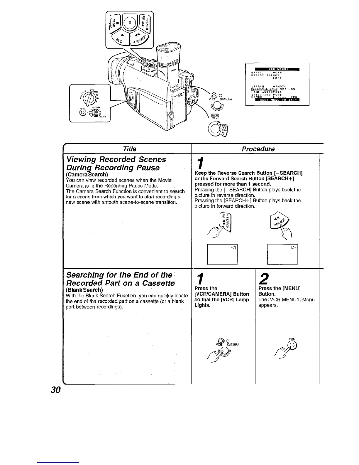 Panasonic NV-DA1B - Viewing Recorded Scenes During Recording Pause; Searching for the End of the Recorded Part on a Cassette